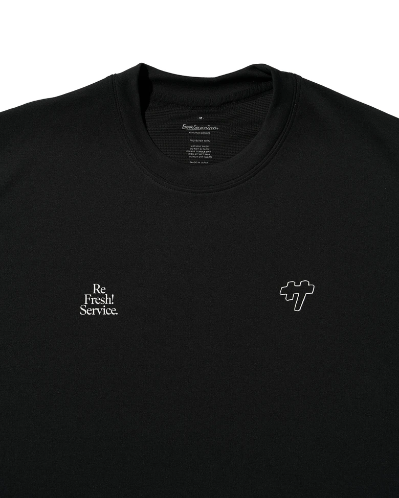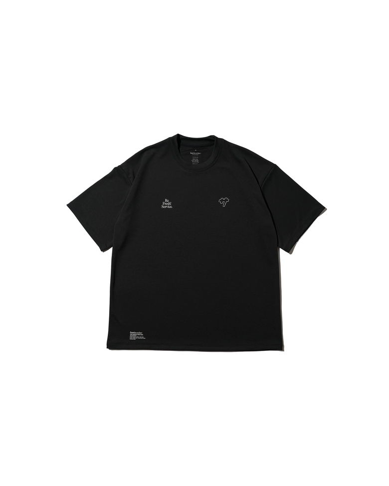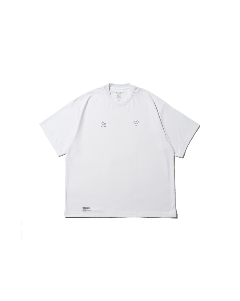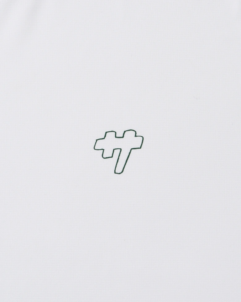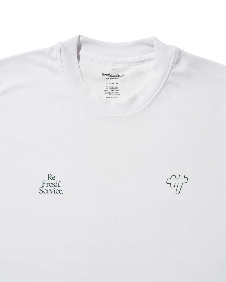 ストレッチ性に優れ、汗を素早く吸収してサラッとしたドライな風合いを保つTシャツ。UVカット/抗菌/消臭と多くの機能を併せ持つ。胸元には両ブランドのロゴを配置。
