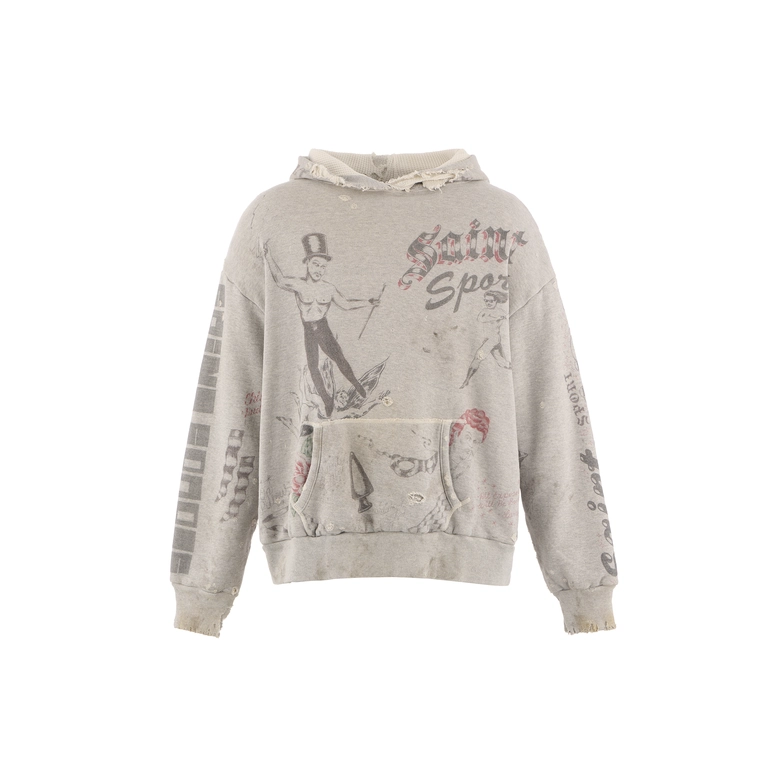 さらに、ヴィンテージへの深い造詣で知られるBerBerJinとのコレクションでは、1930年代や40年代の希少な後付けパーカを忠実に再現しながら、<©SAINT Mxxxxxx>の美学で再構築された逸品が揃う。一点一点に手作業で色落ち加工が施されており、リアルな経年変化が再現されている。