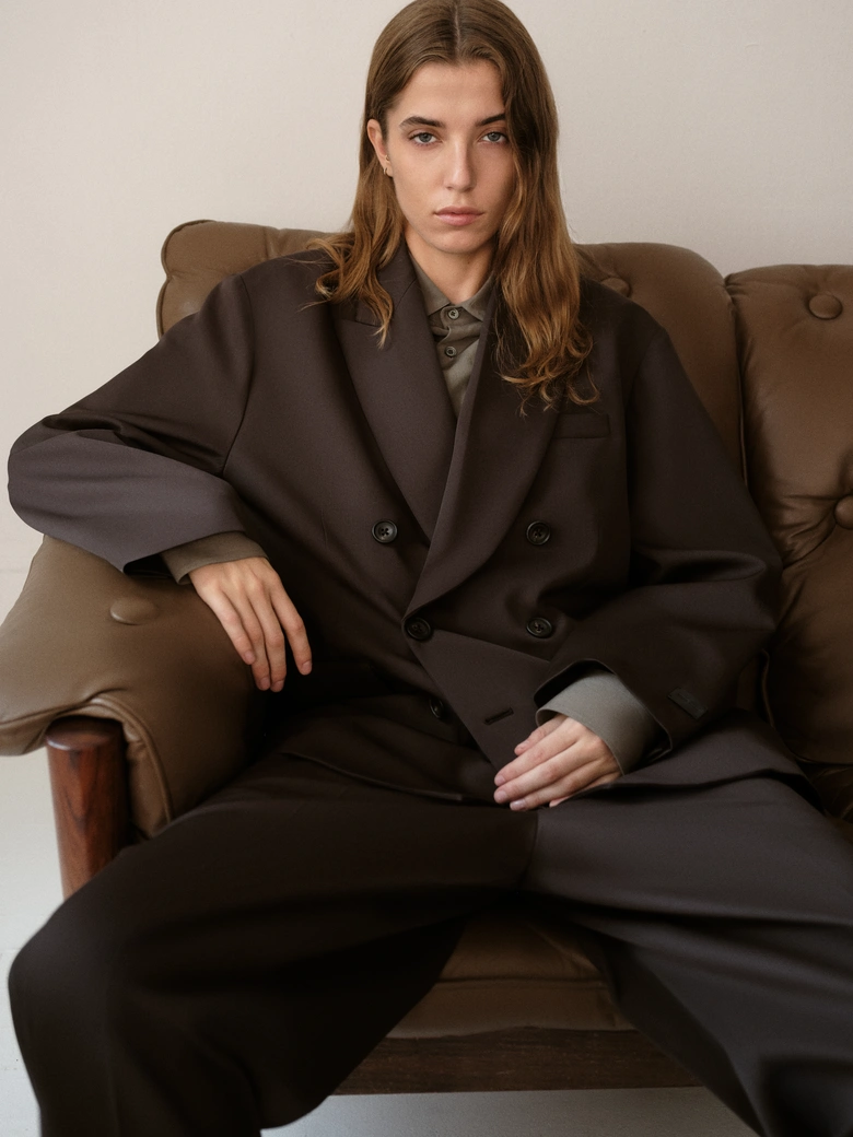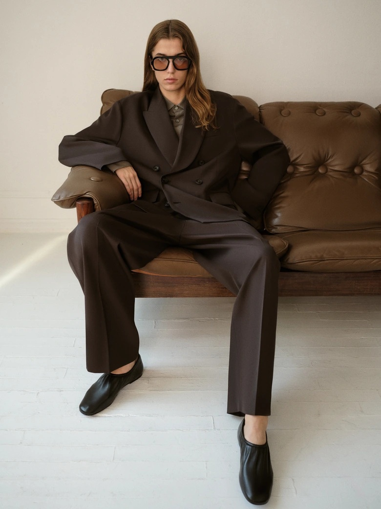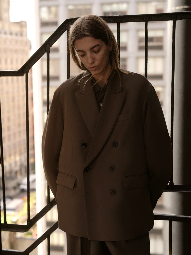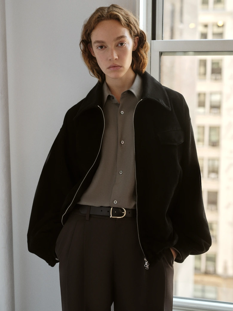 ジャケット、ダブルブレストコート、リバーシブルパーカなどのアウターに加え、リネンシャツ、アルパカニット、オーバーサイズポケットTシャツ、カシミヤブレンドパンツ、シープレザートラウザー、ウールスーツのセットアップまで、幅広いラインナップが揃う。