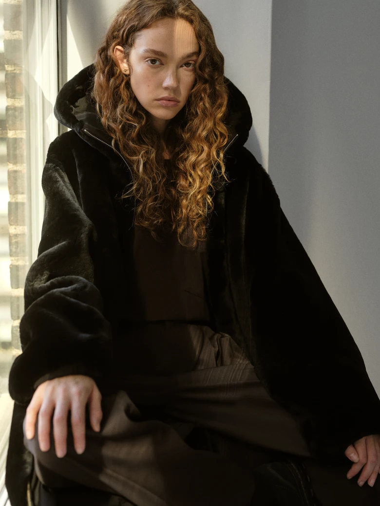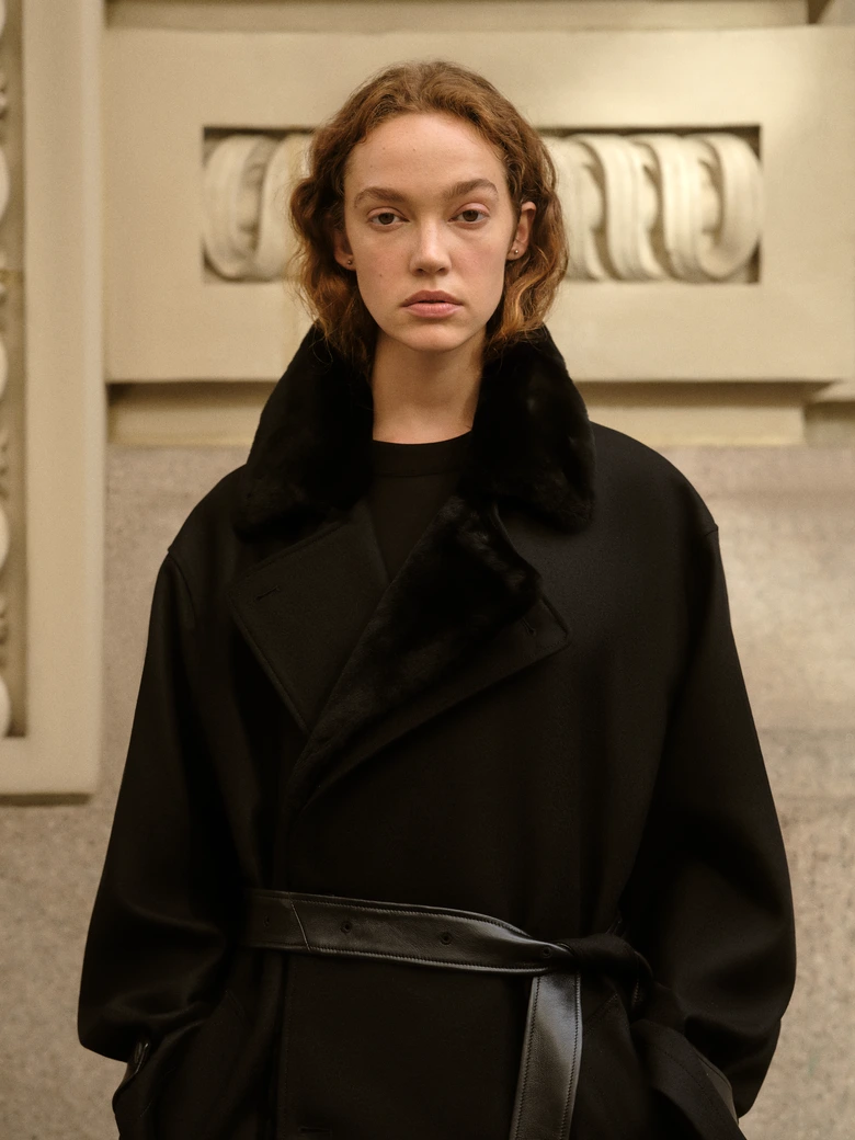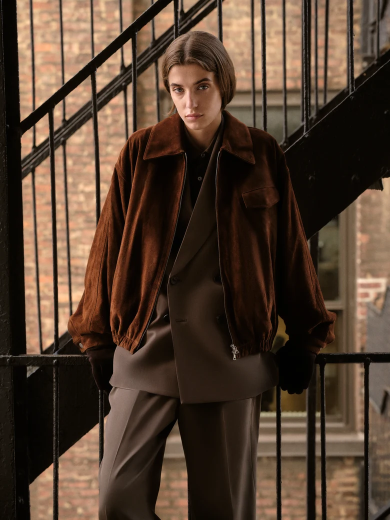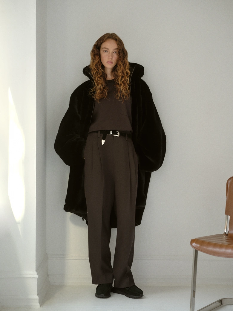 ジャケット、ダブルブレストコート、リバーシブルパーカなどのアウターに加え、リネンシャツ、アルパカニット、オーバーサイズポケットTシャツ、カシミヤブレンドパンツ、シープレザートラウザー、ウールスーツのセットアップまで、幅広いラインナップが揃う。