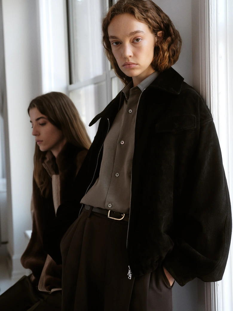 すべてのアイテムには、レザーパッチに刻印された控えめな同色ロゴを配置。双方の理念が細部の仕立てや素材使いに宿るコレクションになっている。