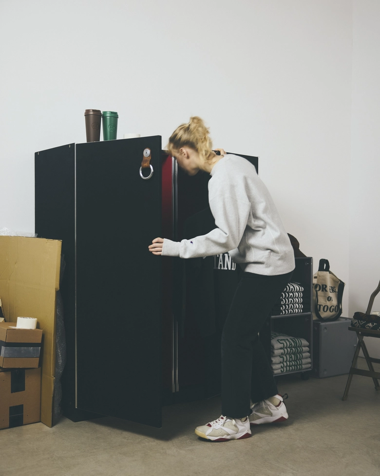 その記念すべき第1弾のアイテムは、<Champion>との別注リバースウィーブ®︎のスウェットシャツ。<Champion>を代表する製法『リバースウィーブ®︎』が採用され、本来は縦方向に使われる生地を横方向に使用するこの製法によって縦の生地の縮みを防ぐと同時に、両脇に『エクスパンションガゼット』を付けることで横の縮みへの影響を少なくし、動きやすさに配慮されている。