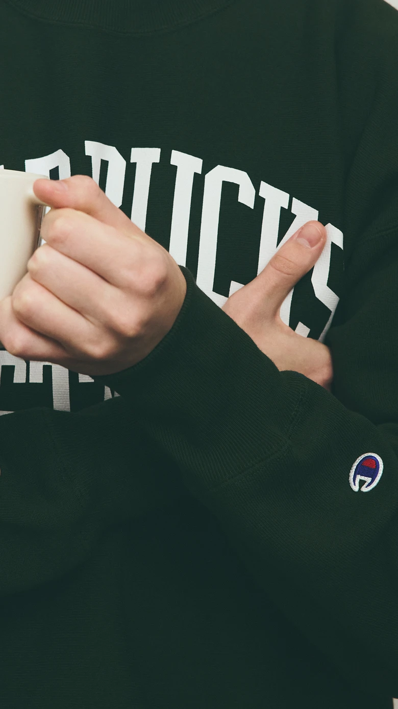 特別なデザインと確かな品質を兼ね備えた、別注ならではの<Champion for STARBUCKS STAND by BEAMS>のリバースウィーブ®︎のスウェットシャツ。これからの季節にぴったりなユニセックス仕様で楽しめる一着をお見逃しなく。