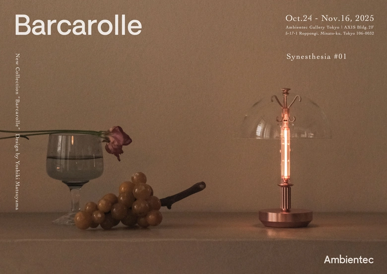 また本展は、<Ambientec>と深い関わりを持つアルゼンチン発のペルフーメラボラトリー<FUEGUIA 1833>との連動企画としても展開。徒歩圏内に位置するFUEGUIA 1833 麻布台ギャラリーでは、10月25日(土)から「Barcarolle」を期間限定で展示。異なる空間での出会いが、作品の多層的な魅力をより鮮やかに浮かび上がらせる。