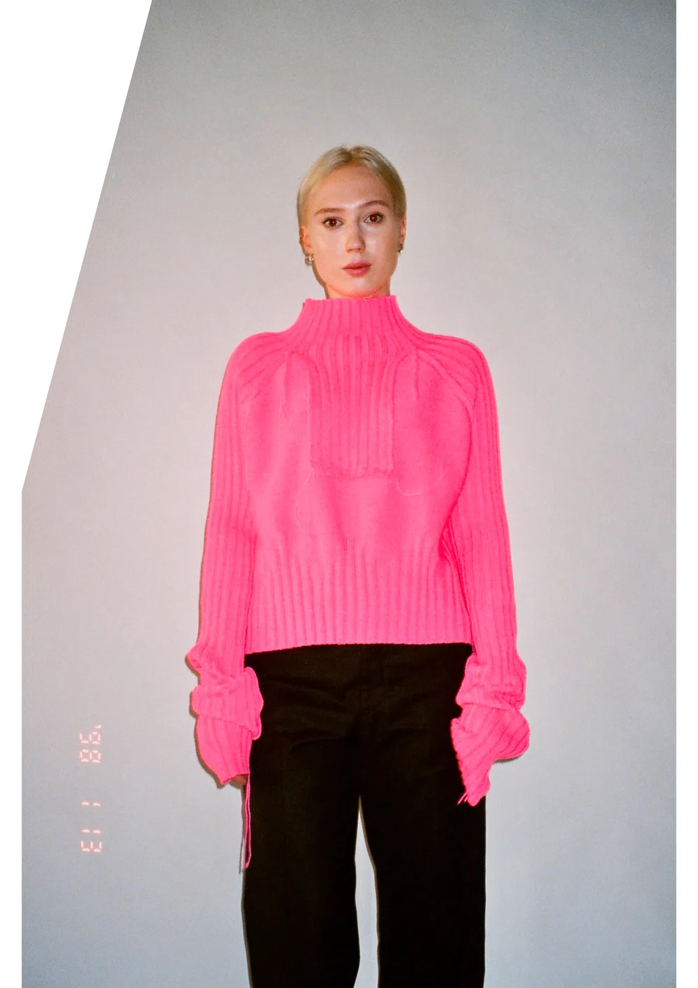 QUIでは以前、デザイナーのふたりにインタビューを実施。ブランドを支える家族的な空気感や、日常の“ずれ”をポジティブに変換する独自の創作哲学が印象的だった。家族経営による小さなブランドで、アイテムの90%以上が家庭用編み機を使用し、手作業で仕上げられている。そのため、どのセーターもひとつとして同じものはなく、完璧ではないからこその温かみと愛らしさが魅力。現在はドバイを拠点に世界中へと発送しているが、その精神的なルーツは今もなおサンクトペテルブルクの気候や文化、そして日常の人々の中に息づいている。