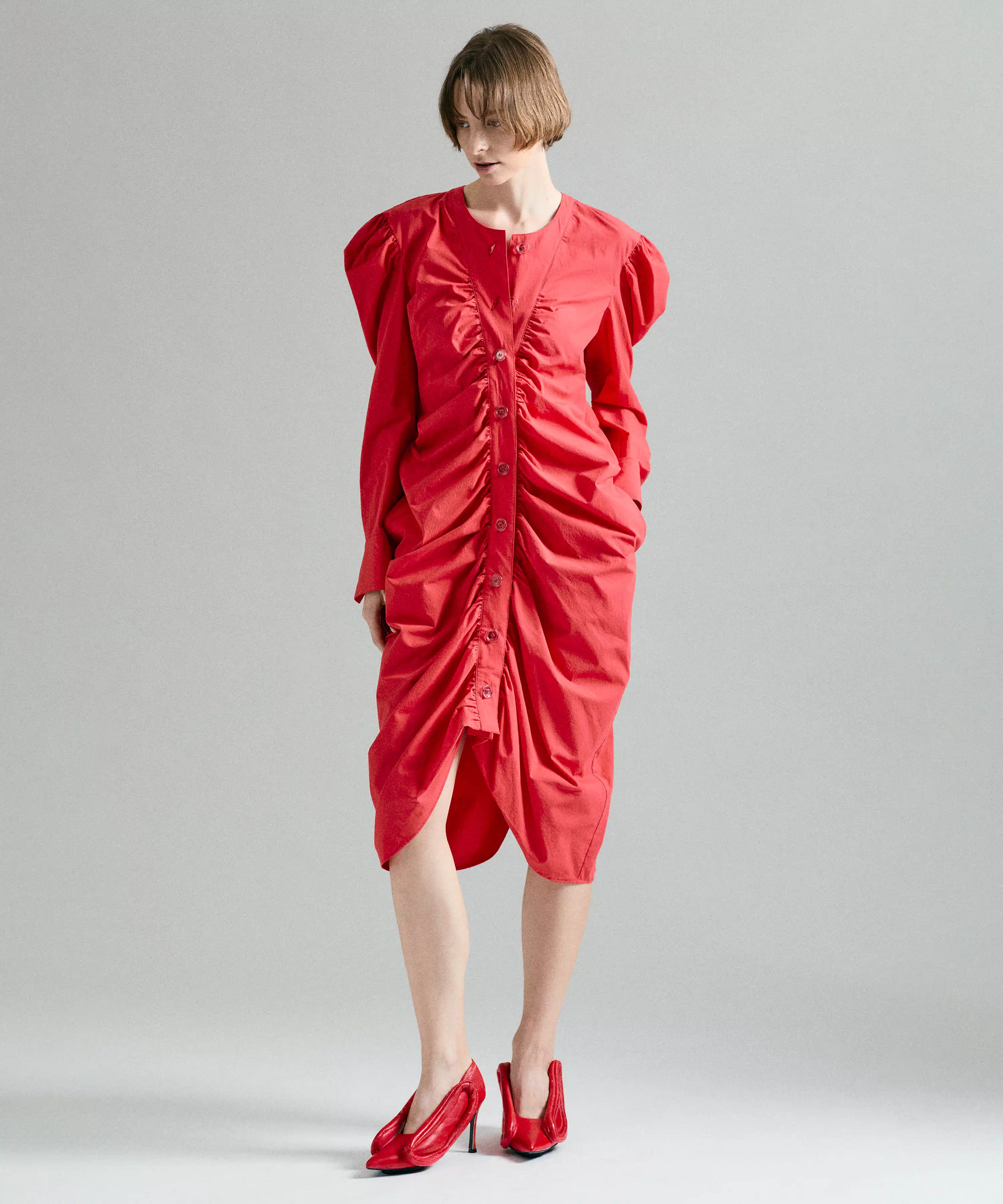 彫刻的で独創的なフォルムメイキングを特徴としながら、リアルクローズとしての実用性も兼ね備える<YOHEI OHNO>。本イベントでは、2025年フォールコレクションの最新クリエーションから、ブランドが追求してきた普遍的なドレスメイキングまで、造形美に焦点を当てたラインナップを揃える。限定復刻の「Black Madonna」ドレスや、伊勢丹新宿店別注カラーの「Takarazuka shirt dress」など、ホリデーシーズンに映える特別な一着も登場する。