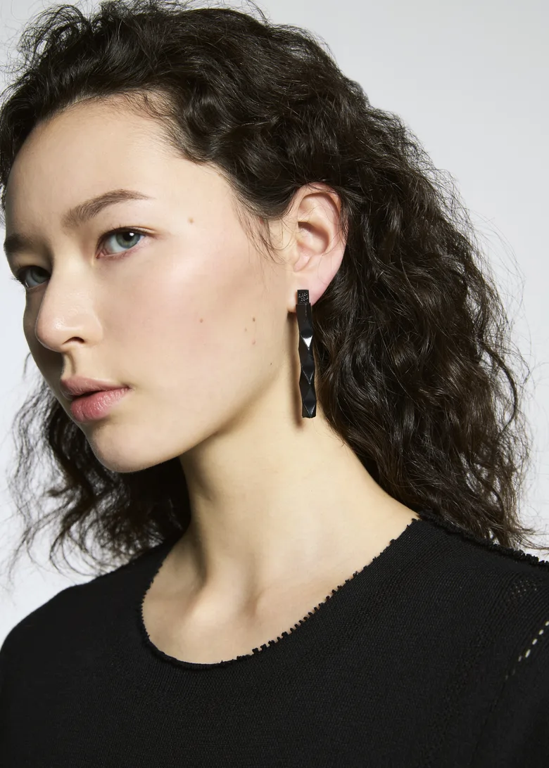 製品化に向けてさらなる技術の可能性を追求した結果、本プロジェクトのプロダクト第一弾として、美しい形状のピアスが完成した。シートを温めることで平面が立体に変化し、精密に設計された形状のデザインが現れる。自在に変形する独自のプロセスは新鮮であり、まさに“四次元”ともいうべき驚きと楽しさを兼ね備えたアイテムだ。