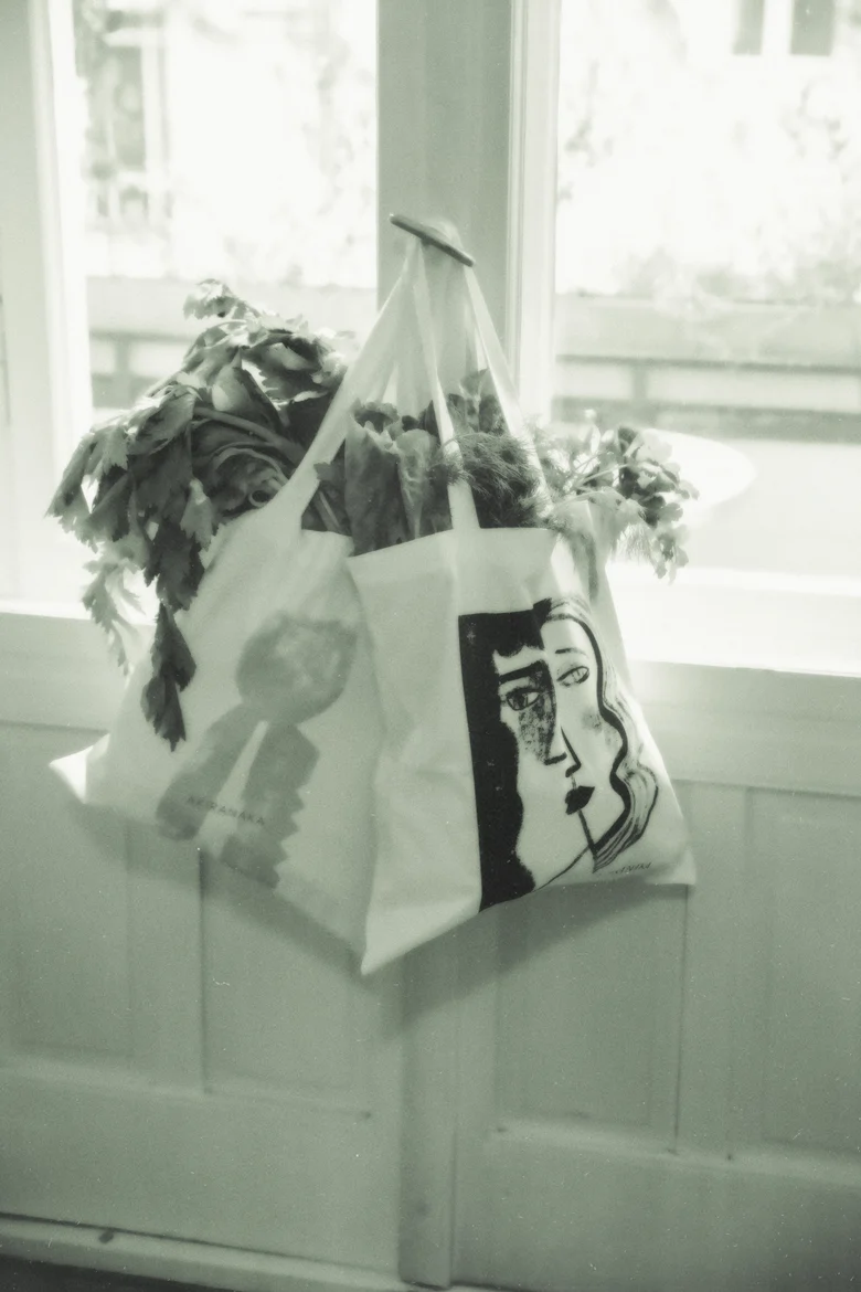 <AKIRANAKA>のクリエイティブディレクター・NAKAが制作の傍らに描いたスケッチや走り書きに光を当て、それらをトートバッグのグラフィックとして配すことで、思考の途中にあった線や、まだ言語化されていない感覚を、そのままプロダクトへと落とし込まれている。