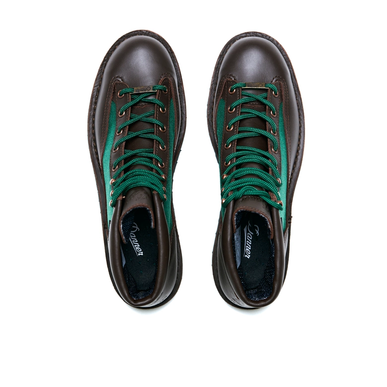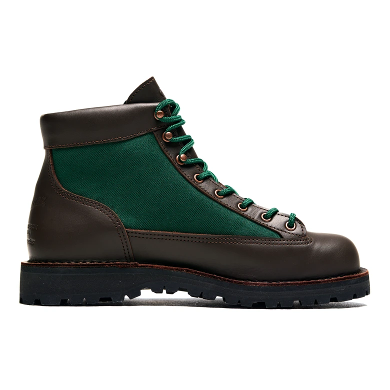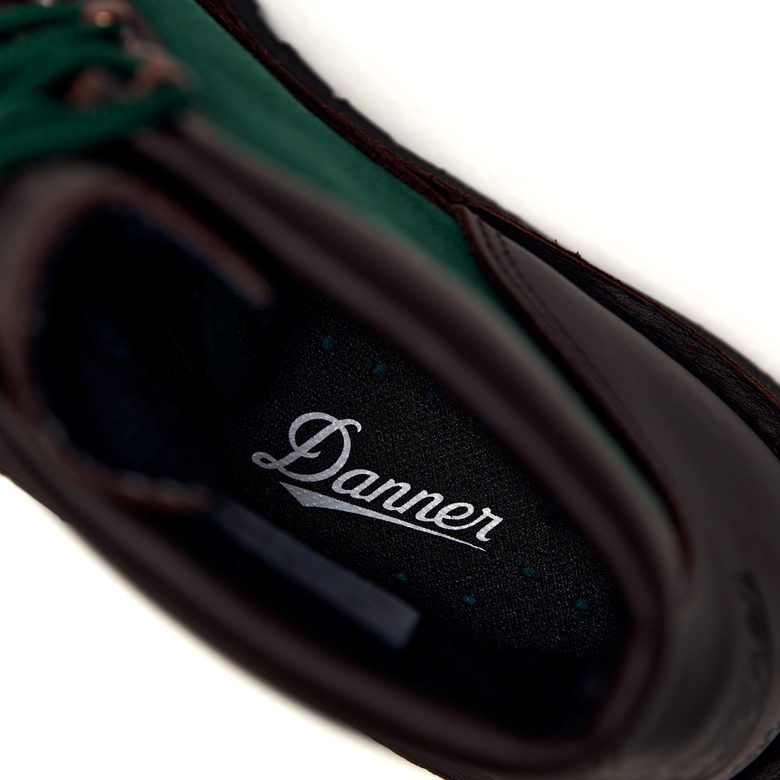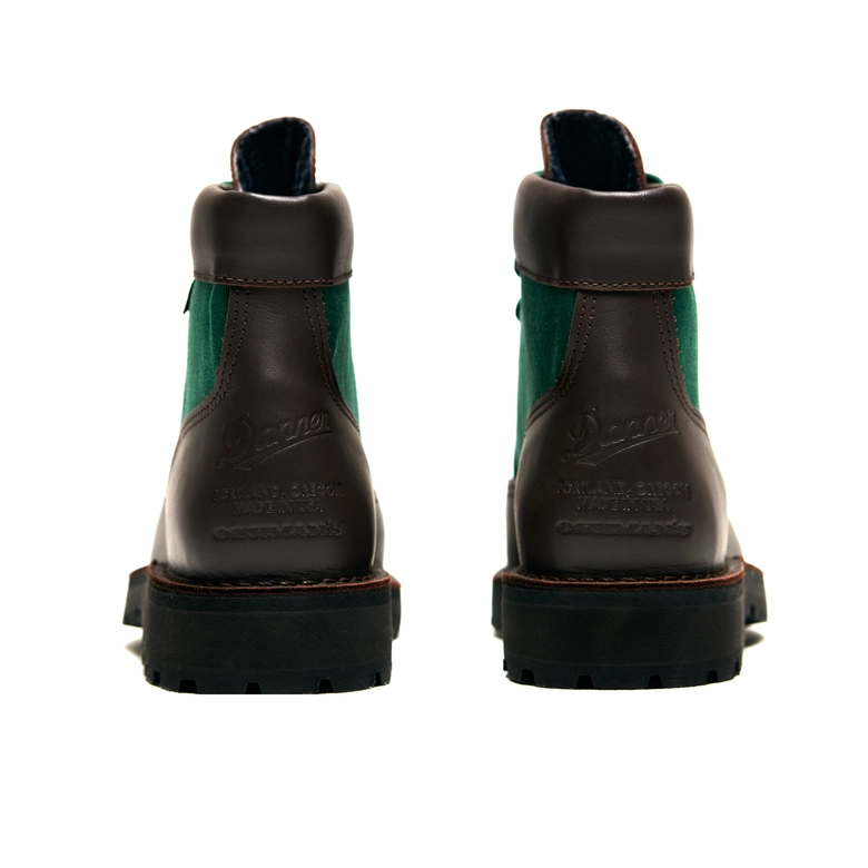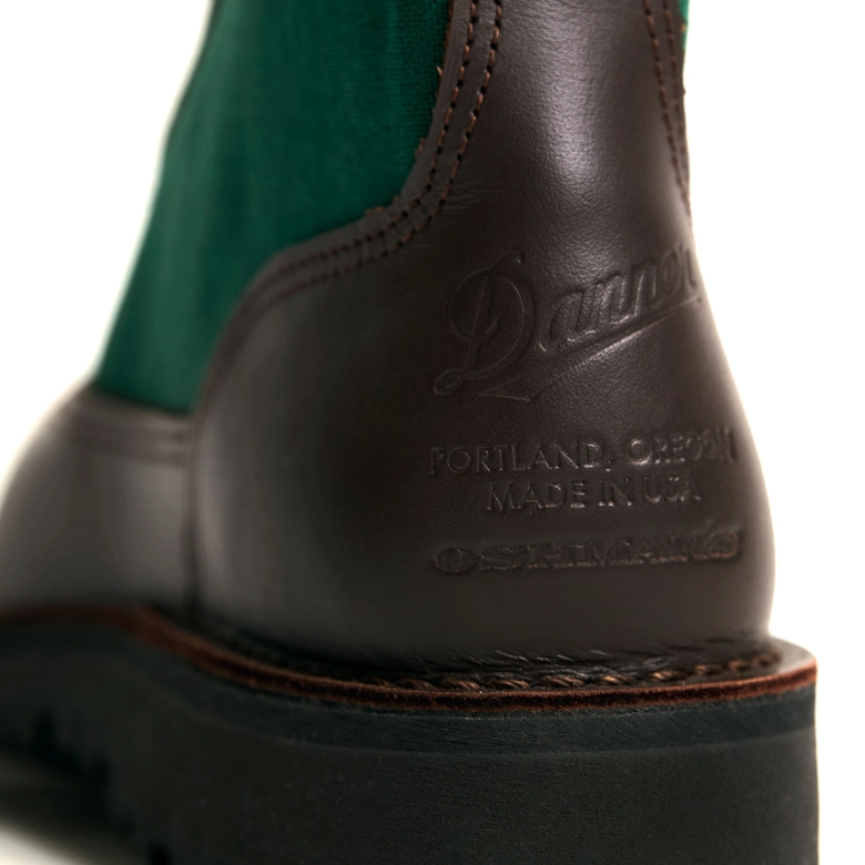 <Danner>の名作「Danner Light」を基に、「Explorer」をオマージュしたブラウン×グリーン別注モデル。OSHMAN’S40周年を記念して限定40足を展開。ブラウンレザーとフォレストグリーンのコーデュラナイロンを組み合わせ、重厚感と軽やかさを両立。ヒール部分には<Danner>とOSHMAN’Sの刻印を施し、Made in USA の特別仕様に。付属のシューレースはグリーン×ブラウンの2トーンで、細部までこだわりを反映。クラシックさと現代的な雰囲気を融合した40周年の締めくくりにふさわしい記念モデルになっている。