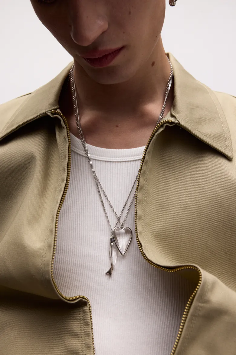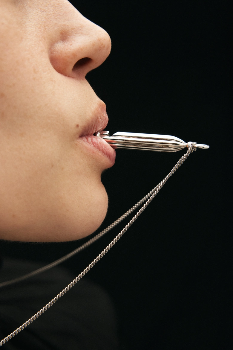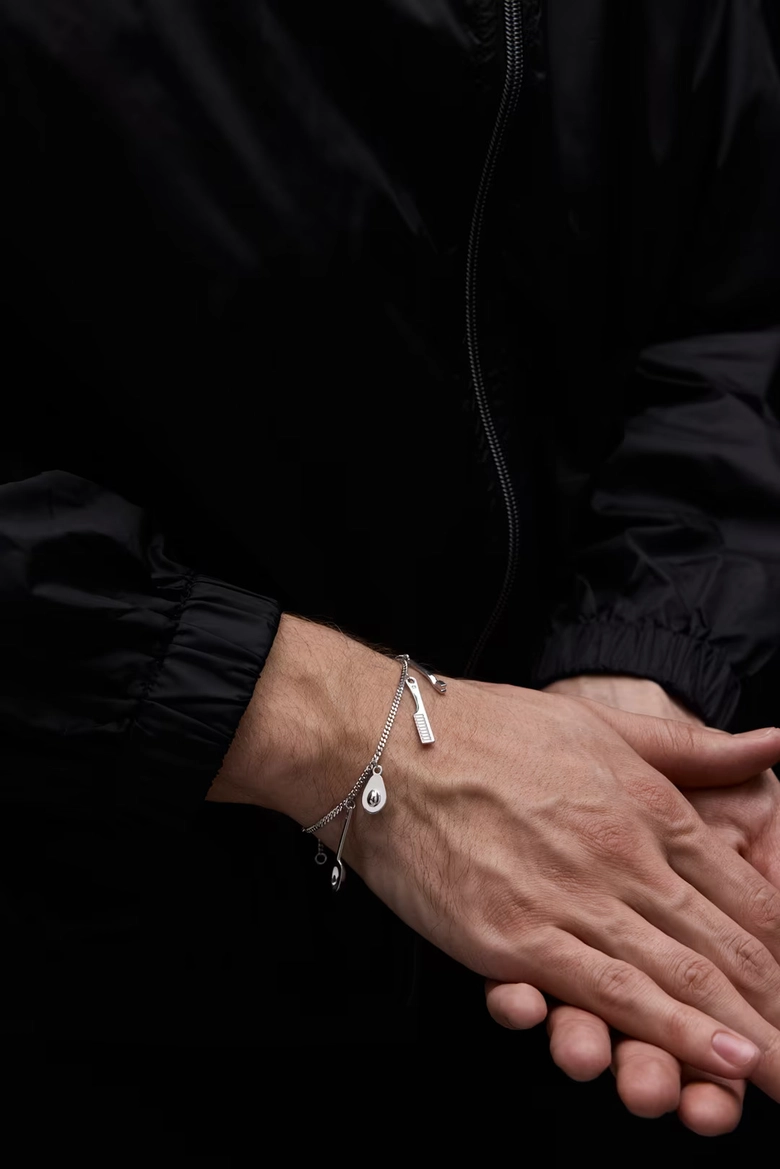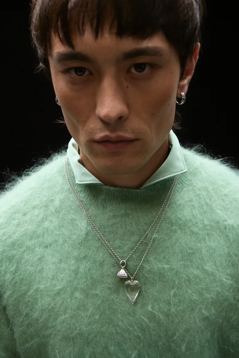コレクションには、たまごっち、フリップフォン(折りたたみ携帯)さらに、マイク、CD、ヘッドホン、カセットテープといった音楽に着想を得たトリンケットも登場。すべてのトリンケットは、シルバーチェーンやフープピアスに装着可能。単体でも複数組み合わせても身につけられ、日常のモチーフがアートへと昇華。さりげないユーモアを含む組み合わせを通じて、“ありふれたもの”に対する視点を問いかける、身につけるマニフェストのようなアイテムになっている。