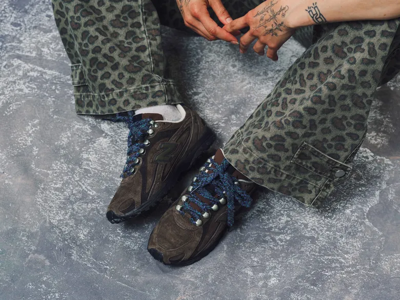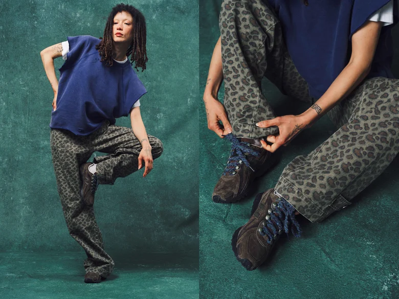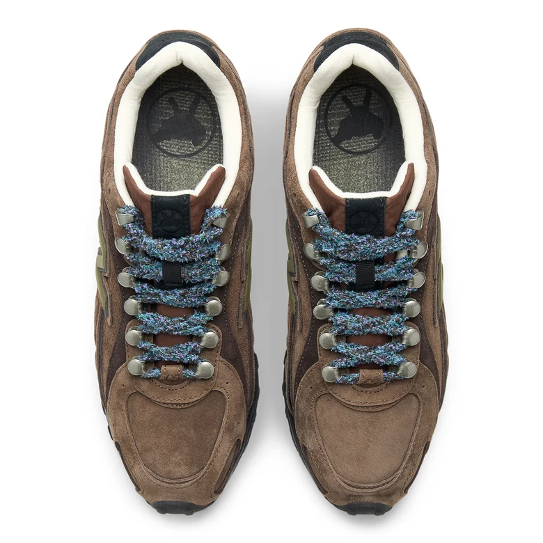 <Basketcase>によるコラボレーションモデルでは、Zach Kinningerが自身の原点に立ち返り、ノスタルジックでアウトドアを感じさせるデザインを採用した。ダークなアースカラーと柔らかな質感を用い、ハイキングスタイルのアイレットやブーツ風のシューレースオプションを取り入れることで、このシルエットを新たに再構築している。
