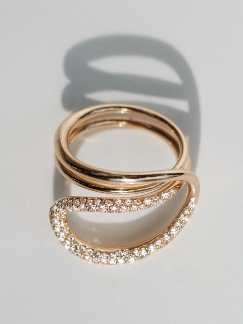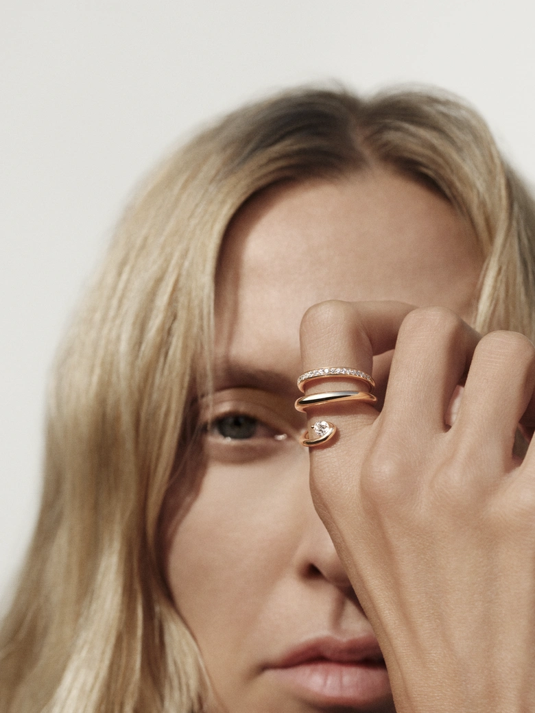 パリと東京、フランスの繊細な感性と日本のミニマリズム、素材の純粋さとデザインなど、あらゆる美意識を結ぶ“架け橋”として構想され、ブランドの新たな章を告げるファインジュエリーコレクションも拡充して展開される。精緻さや精密さ、そして異なるかたちの永続性を表現するファインジュエリーは、彫刻的な感性で知られるシャルロット・シェネのクリエーションの自然な延長線上にあり、ジュエリーという枠を超えたアートピースとしての側面も強めている。