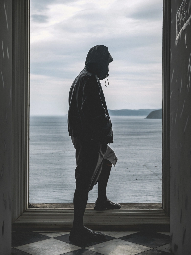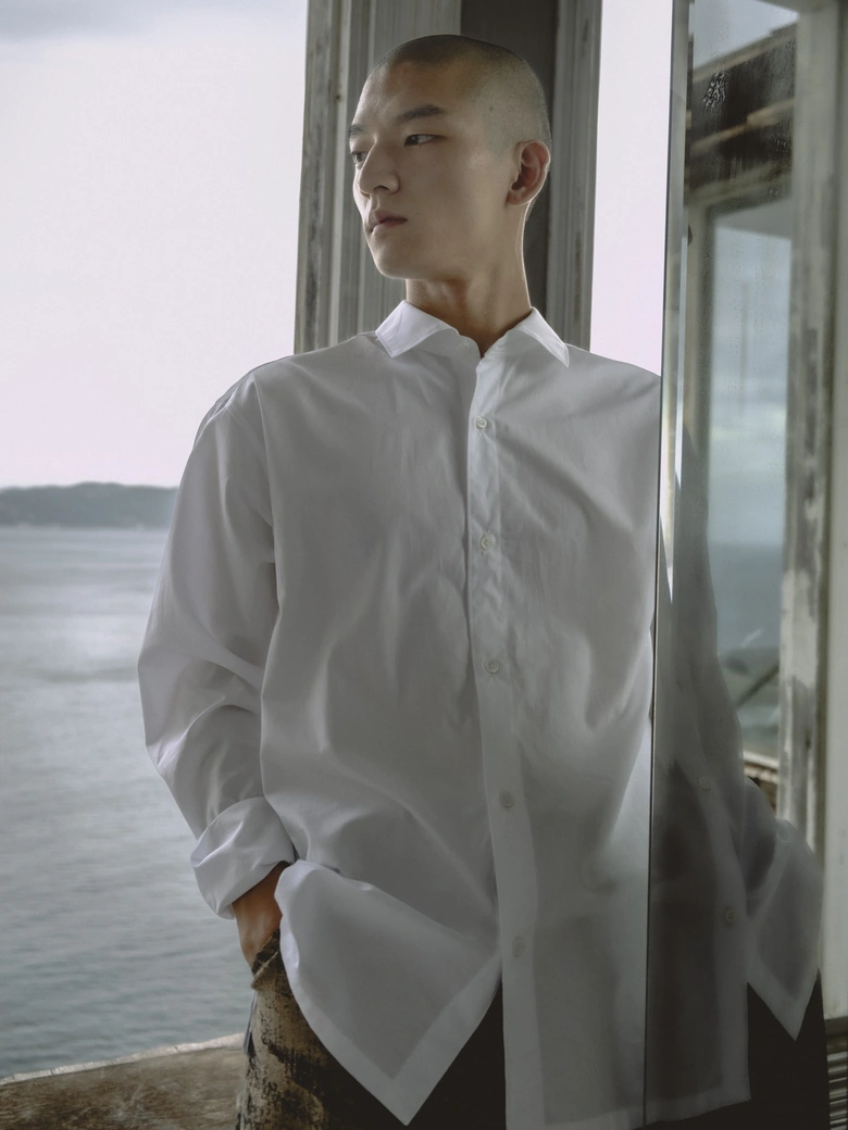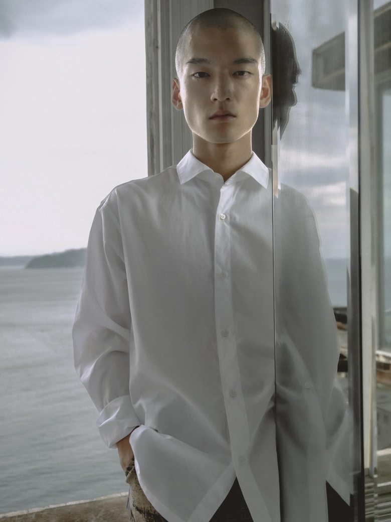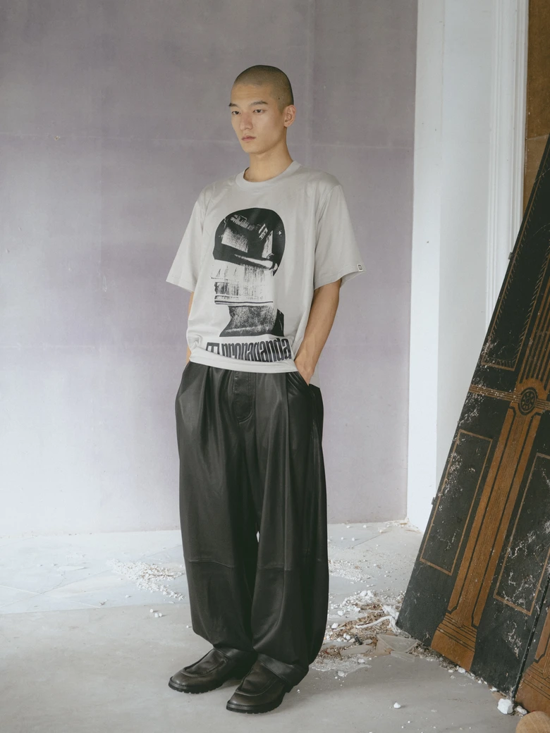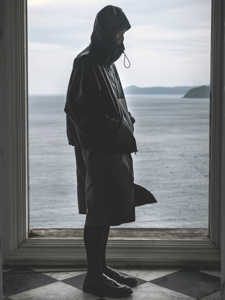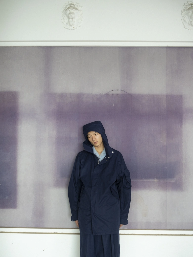 本コレクションは、情報が溢れる現代社会への問いかけをテーマとしており、James Blakeの楽曲『Like the End』から着想を得た、「不要な関心の増幅がもたらす社会全体の無関心」への違和感が核となった。映画『関心領域』の視覚表現にも通じる、見えないものの気配や構造的な緊張感を衣服に落とし込んでいる。真偽の曖昧な情報が無秩序に拡散され、正しさよりも速度が優先される時代において、タイトルの「x」は、揺らぐ真実の輪郭を表すものとして位置付けられている。