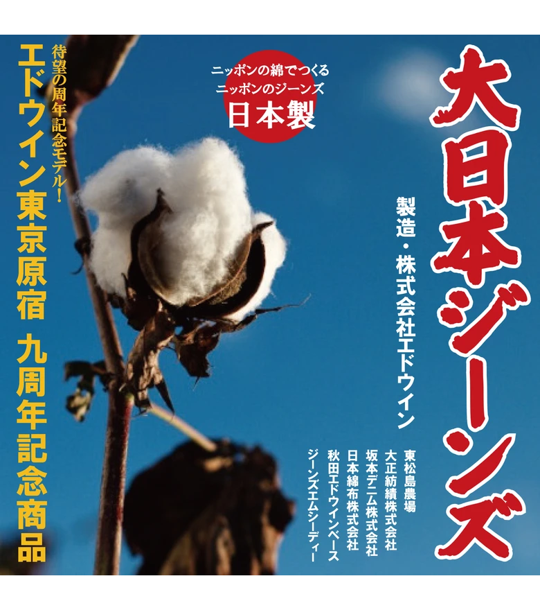 EDWIN TOKYO HARAJUKU、9周年を記念して原料レベルまで日本製にこだわった限定アイテム「大日本ジーンズ」を発売