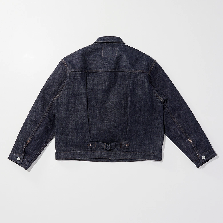 デザイン面では、1930〜50年代のヴィンテージジーンズをオマージュ。ルーズフィット、シンチバック、バックポケットの当て布など、当時のディテールを忠実に再現。デニムジャケットも同様に、ルーズフィットで短丈のシルエットが特徴だ。