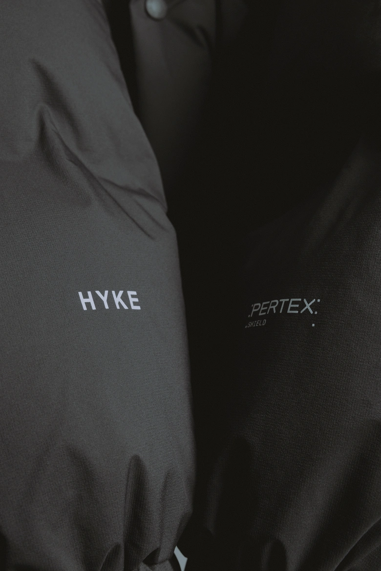また、右袖に「HYKE」、左袖に「PERTEX®」のロゴを配し、裾にはドローコードを備えてシルエットの変化も楽しめる仕様。サイズはユニセックスで着用できる5サイズ展開となる。