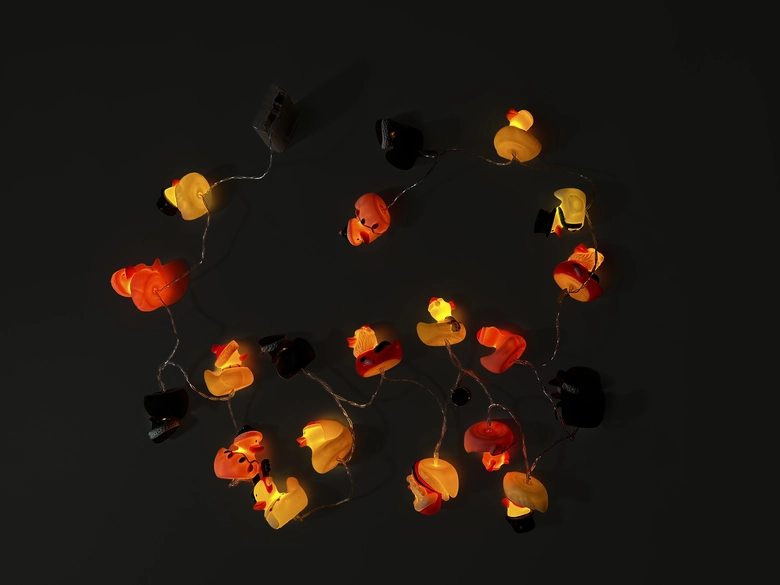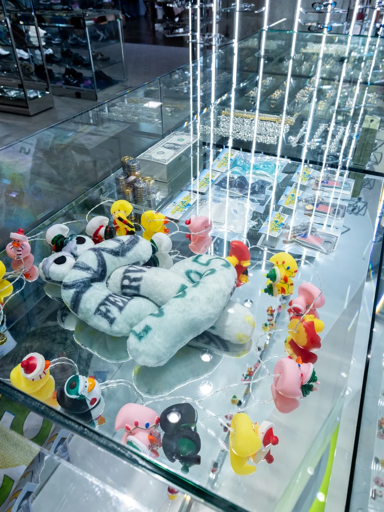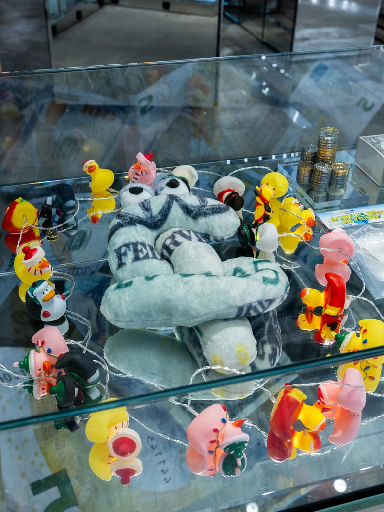 <KOTA OKUDA>からは、ホリデーコレクションとして、$(DOLL)とDUCK LED LIGHTがラインナップ。貨幣柄のぬいぐるみ$(DOLL)は、S,M,Lの3サイズ展開となり、⼤きいもので60センチを超え、抜群の存在感を放つ。
