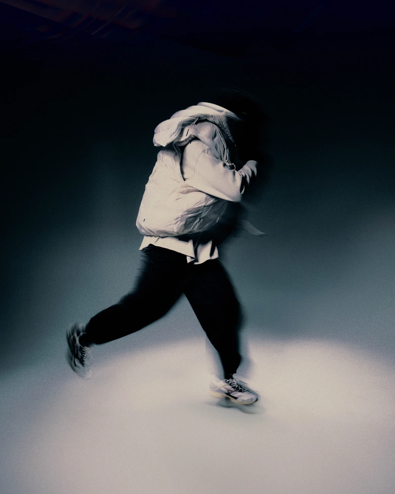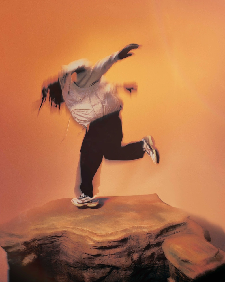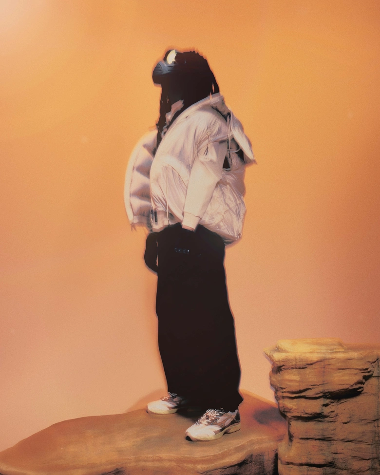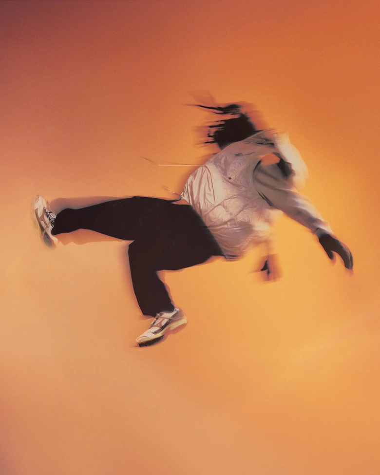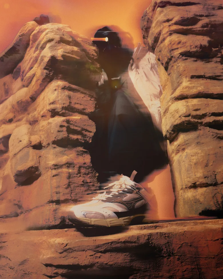 Y2K時代のアスレチックスタイルをベースに、ディテールを幾重にも重ねた<AFEW>ならではの解釈と、ミズノの伝統と革新を融合させたデザインは、無限の可能性と、広がる空に向かって飛び立つかのような挑戦を表現している。
