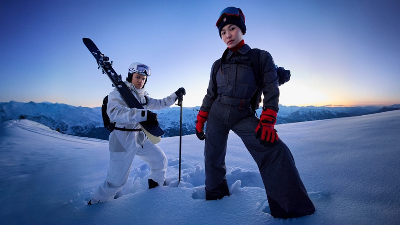 特に注目すべきは、日本の児島で開発されたテクニカルデニムである。防風性、防水性、透湿性を兼ね備えながら、自然なドレープやインディゴ本来の色味、手触りを保つよう設計されており、雪上での使用にも適応する機能性を誇る。デニム素材のジャケットやパンツには、YKK® AquaGuard®ジッパー、RECCO®リフレクター、プルアウトフード、サムホール付きのストレッチジャージカフ、フルシームテープ加工、スキーパス用ポケット、パウダースカートといった高機能ディテールが備わっている。インサレーションにはPrimaLoft® Gold Activeを使用し、軽量でありながら高い保温性と快適性を実現している。さらに、レザーベルトやUltrasuede®トリム、コーデュロイのカラー、コントラストステッチが加えられ、機能性とエレガンスのバランスが追求されている。