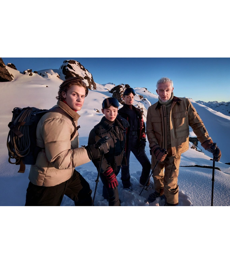 撮影はアルプスで行われ、モデルにはブランドアンバサダーであるアルペンスキーのワールドカップチャンピオン、ルーカス・ピニェイロ・ブラーテンや、オリンピック金メダリストのスノーボーダー、クロエ・キム、俳優のヴァンサン・カッセル、スーパーモデルのアンバー・ヴァレッタが登場。フォトグラファーのマリオ・ソレンティが手掛けたヴィジュアルは、壮大な自然の中で彼らの個性とコレクションの魅力を際立たせている。