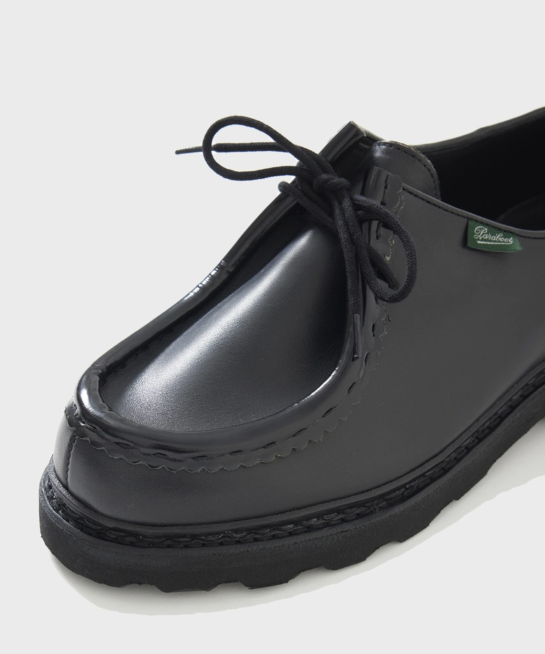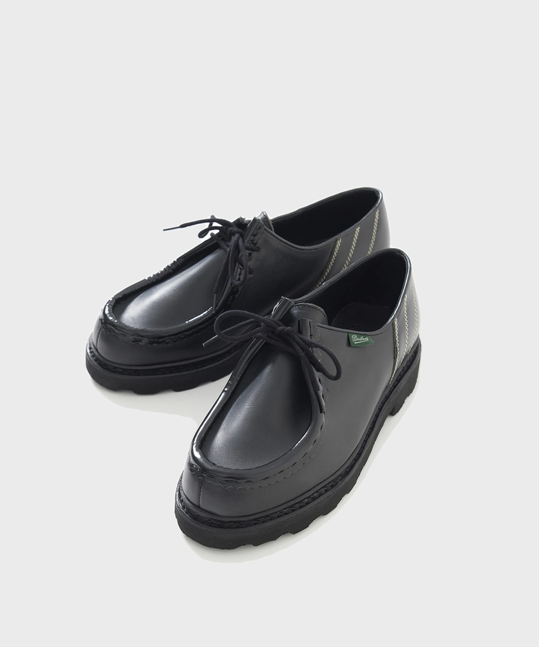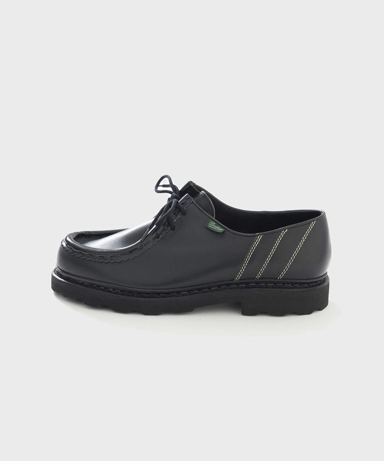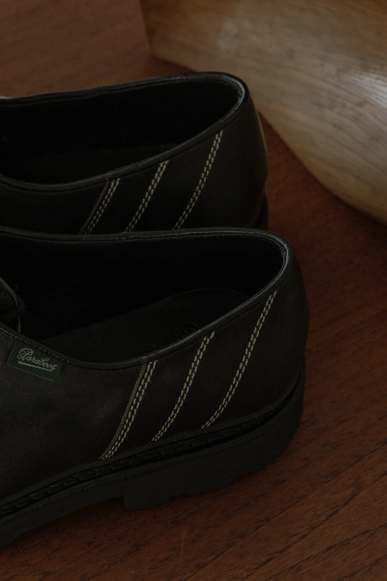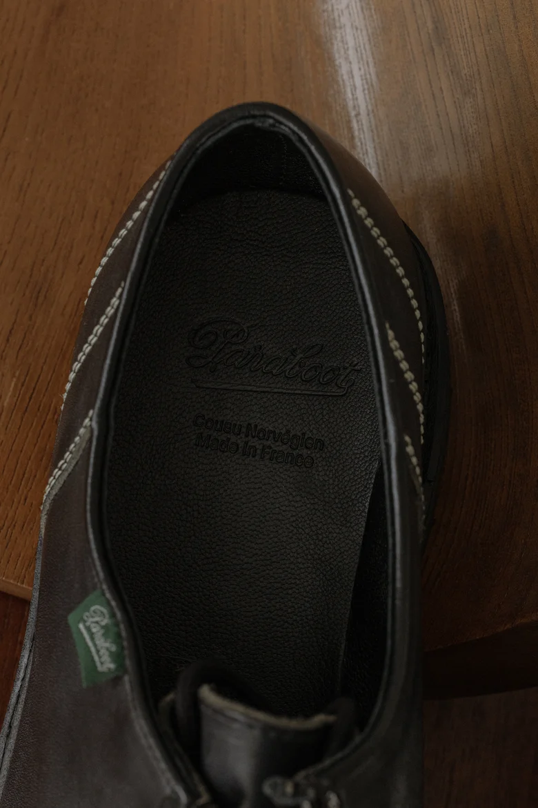 「MORZINE」は、定番チロリアンシューズ「MICHAEL(ミカエル)」の原型とも言われており、1930年代から生産されている歴史あるモデル。踵の3本ステッチは、当時の登山靴に見られた補強用レザーの名残であり、過酷な環境下でも耐久性を発揮する構造を実現している。