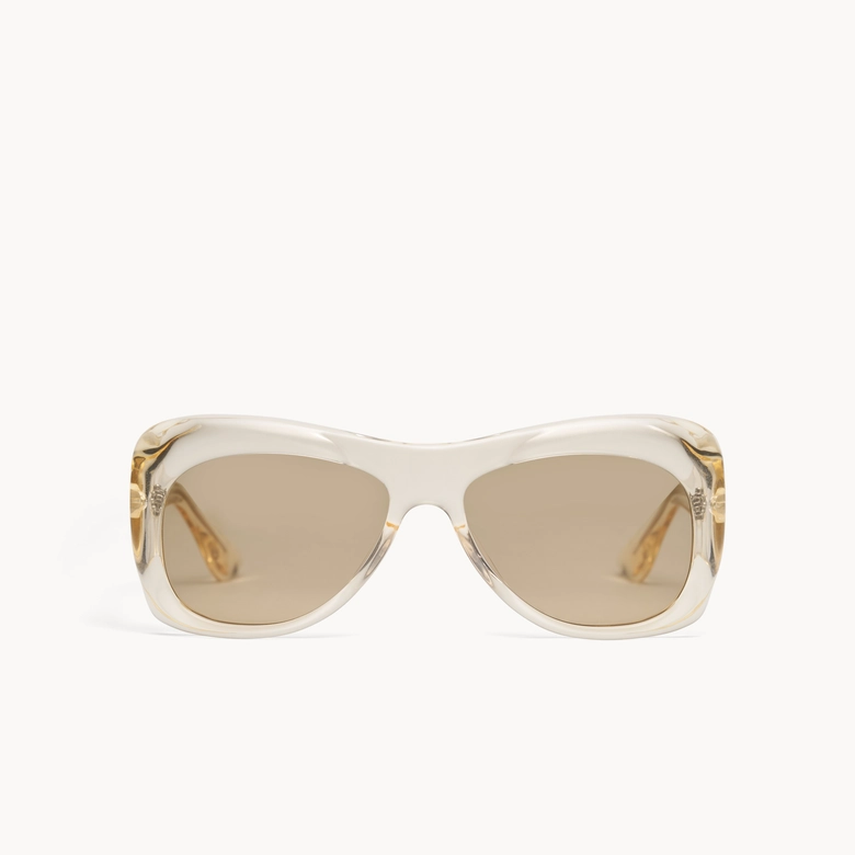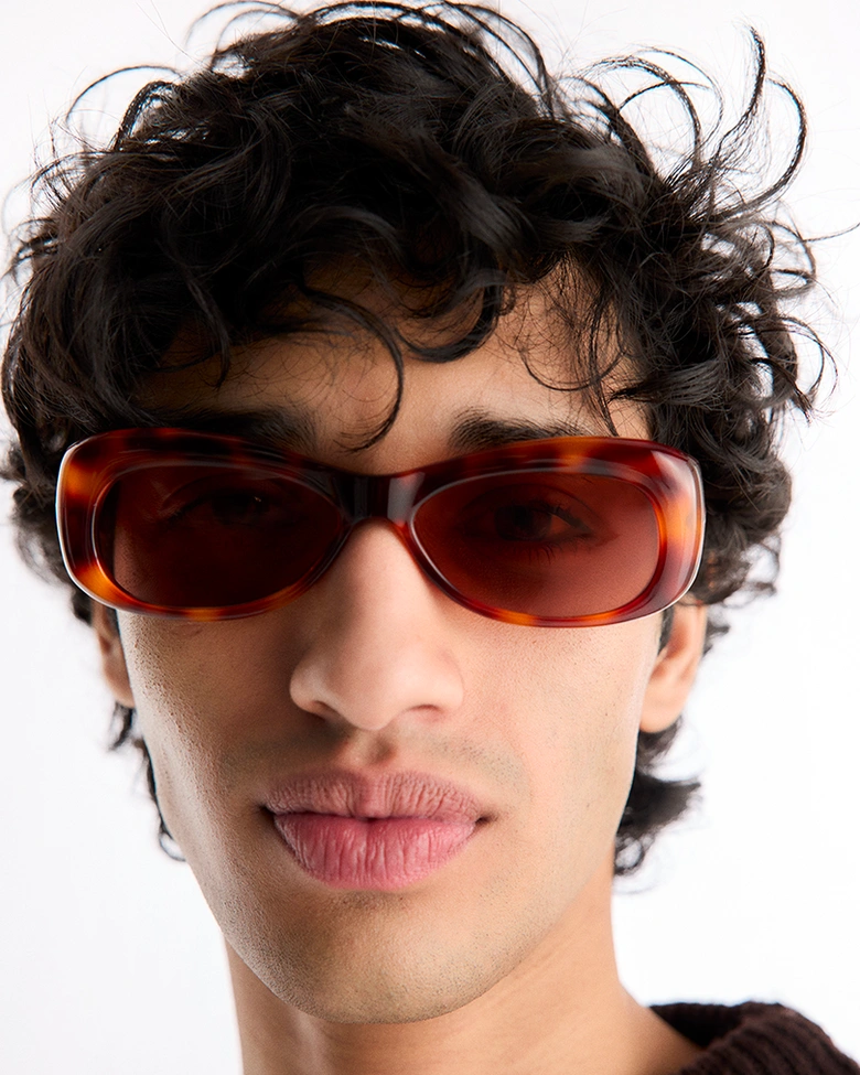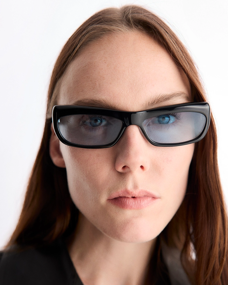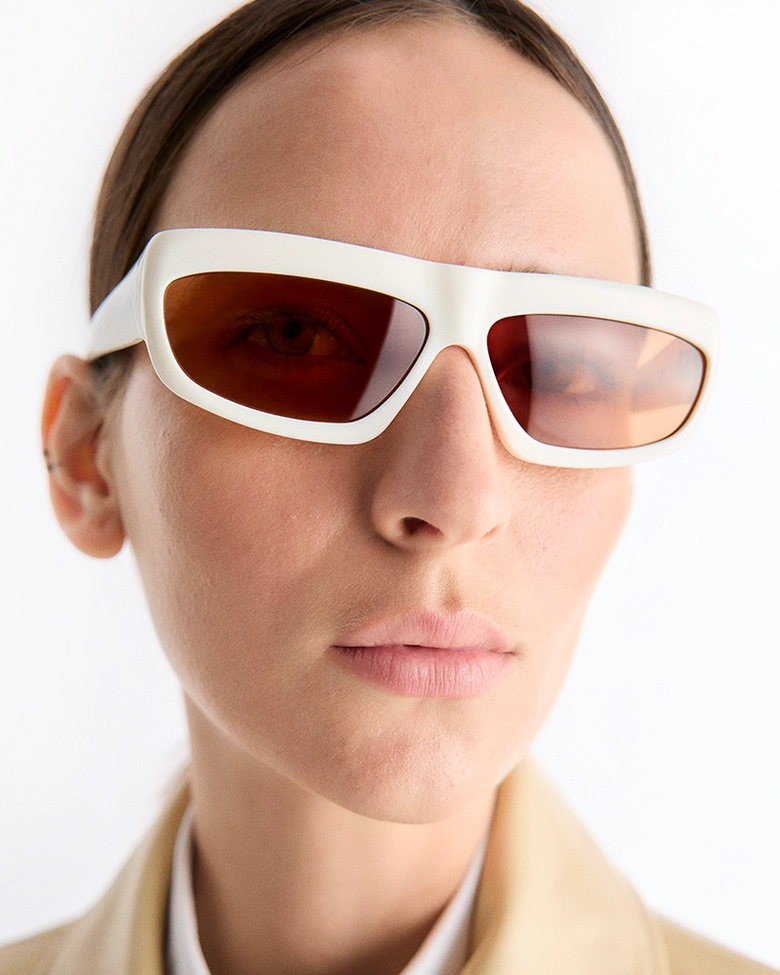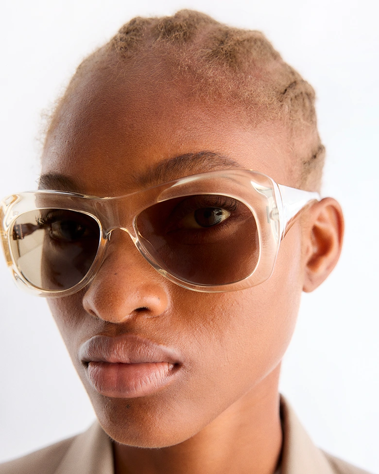 「Jilan」は、馴染みあるアーキタイプに革新性を与えることで、過去と現在の橋渡しを目指している。コレクション全体には、厚みのある大胆なブローラインと、洗練されたボトムラインのコントラストが一貫して見られ、重厚なアセテート素材を内側から削り出すことで立体的な造形美が実現されている。
