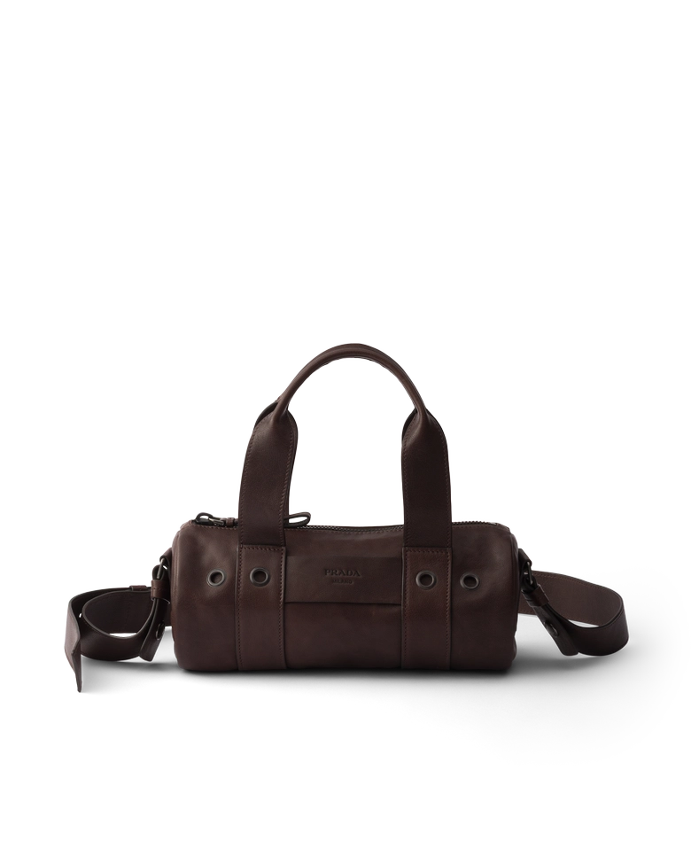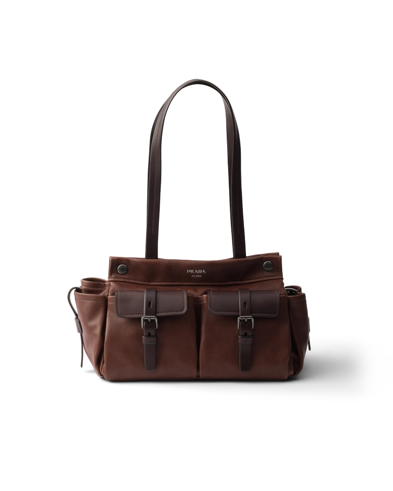 バッグは、キャンバスとレザーを組み合わせたデザインに、大きなポケットやスタッズをあしらったアイテムや、ヴィンテージ加工を施したレザーのトップハンドルバッグが登場。さらに、スエードやナッパレザーで仕立てた「プラダ エクスプローラ」バッグなど、素材の表情を活かした多様なラインナップが揃う。