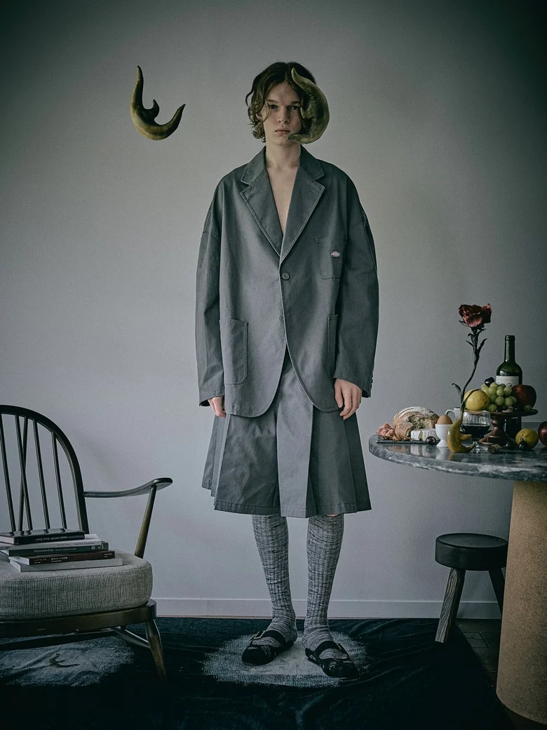 今回登場するアイテムは、ワークウェアを象徴する<Dickies®>と、日常の情景を描くようなデザインアプローチを持つ<SHINYAKOZUKA>が融合した、ユニフォームとファッションの新たな関係性を提示するラインナップになっている。それぞれの背景を持つアイテムが素材と構造によって自然に溶け合い、セットアップとしても単品としても強い存在感を放つ仕上がりとなる。