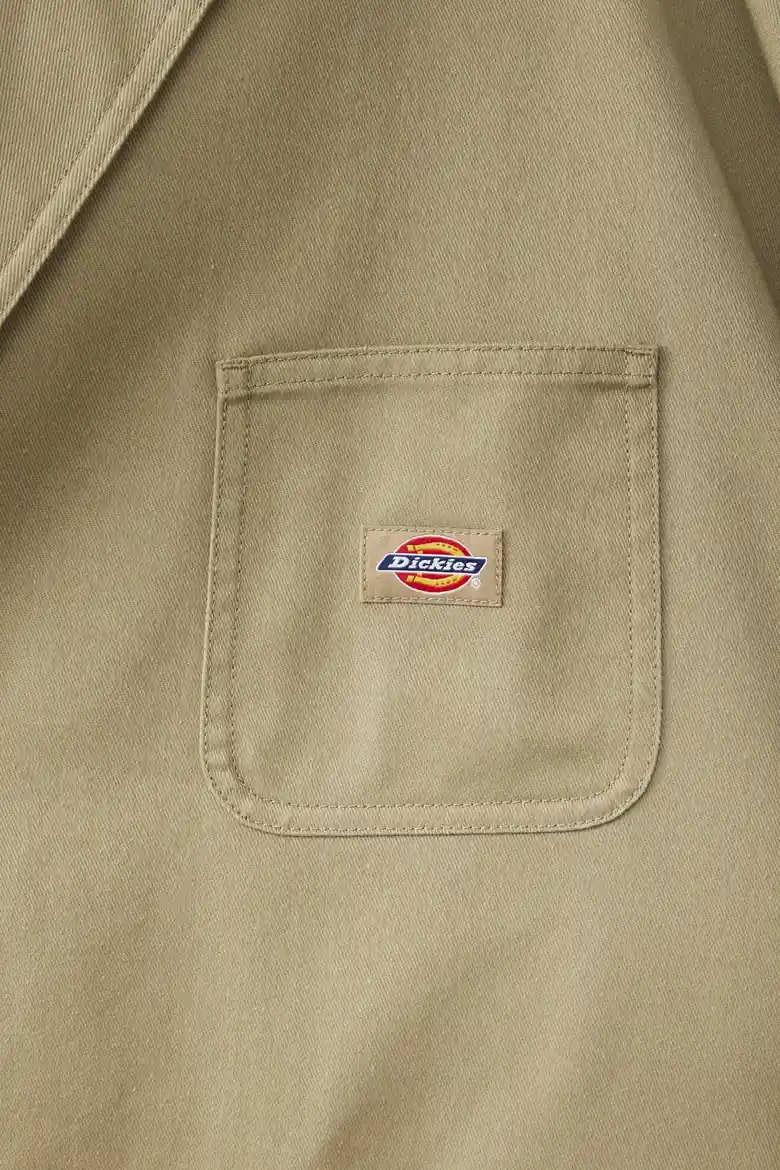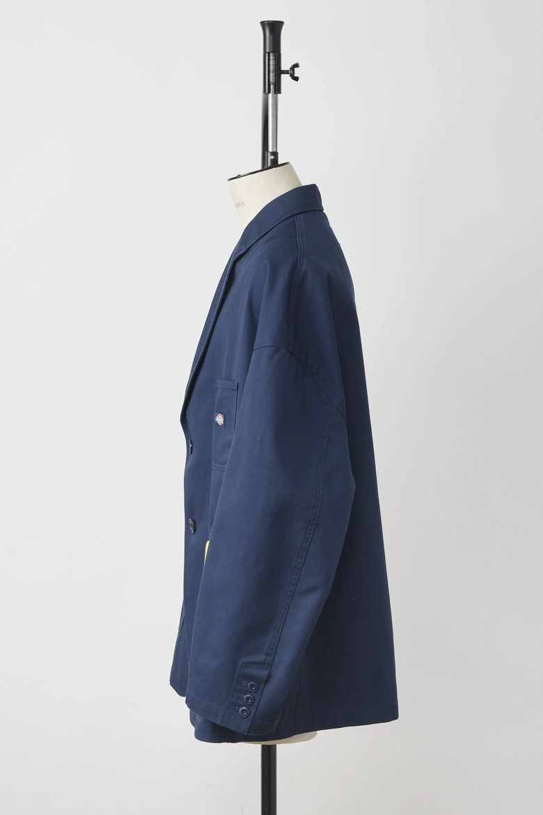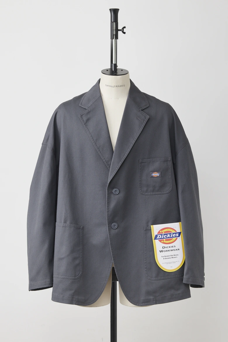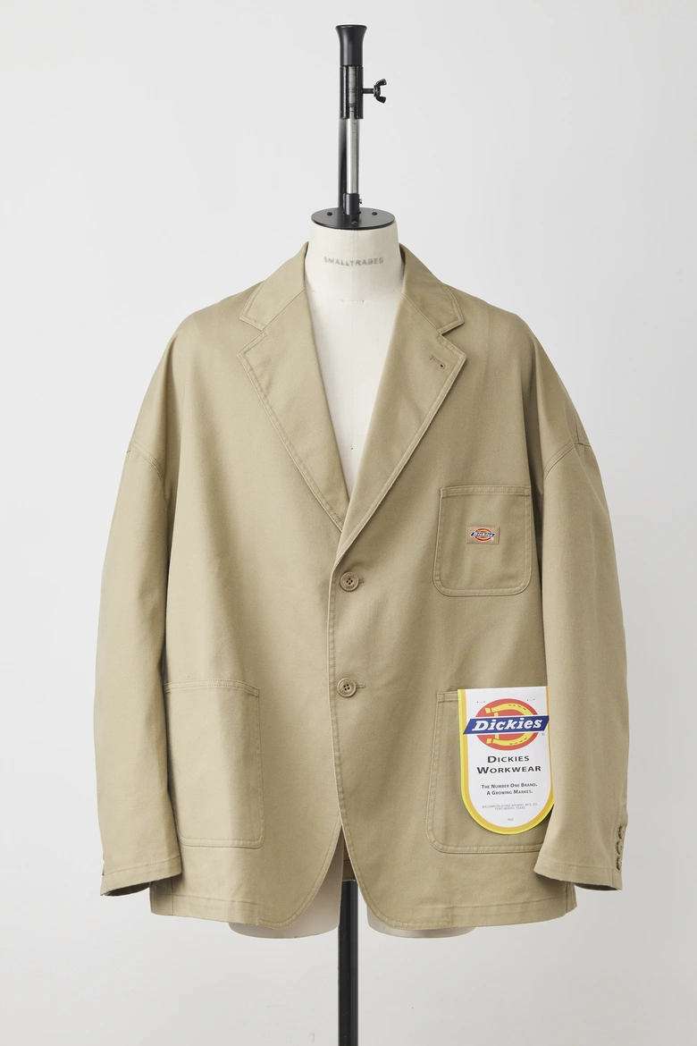ブランドの代表作「HIS JK」をベースに、<Dickies>が長年使用してきたT/Cツイル素材を用いたワークジャケット。肘下まで落ちるドロップショルダーや、立てても着用可能な襟など、オリジナルの構造美はそのままに、軽やかでタフな素材感が融合した特別仕様。
