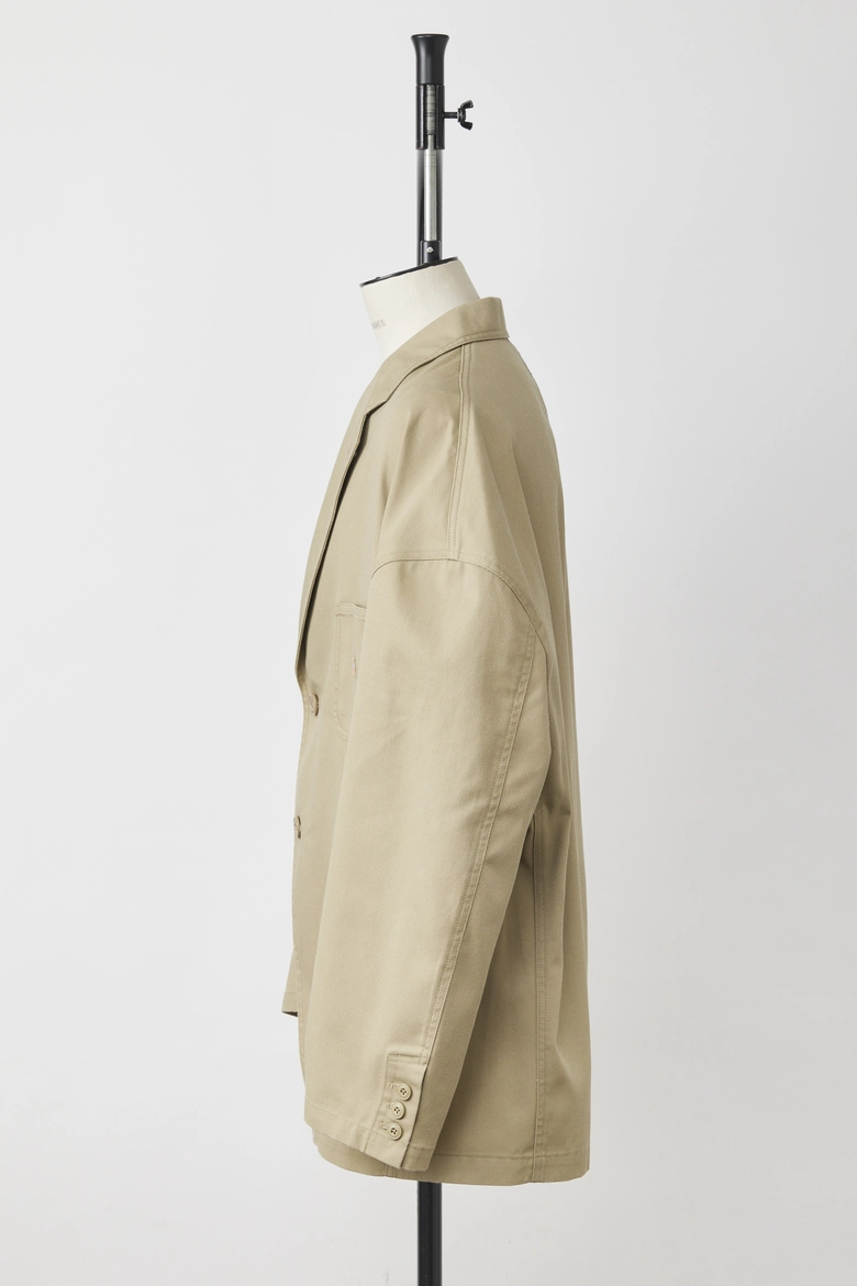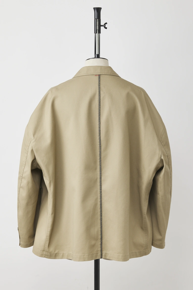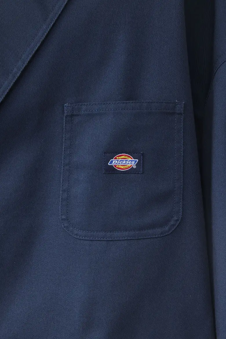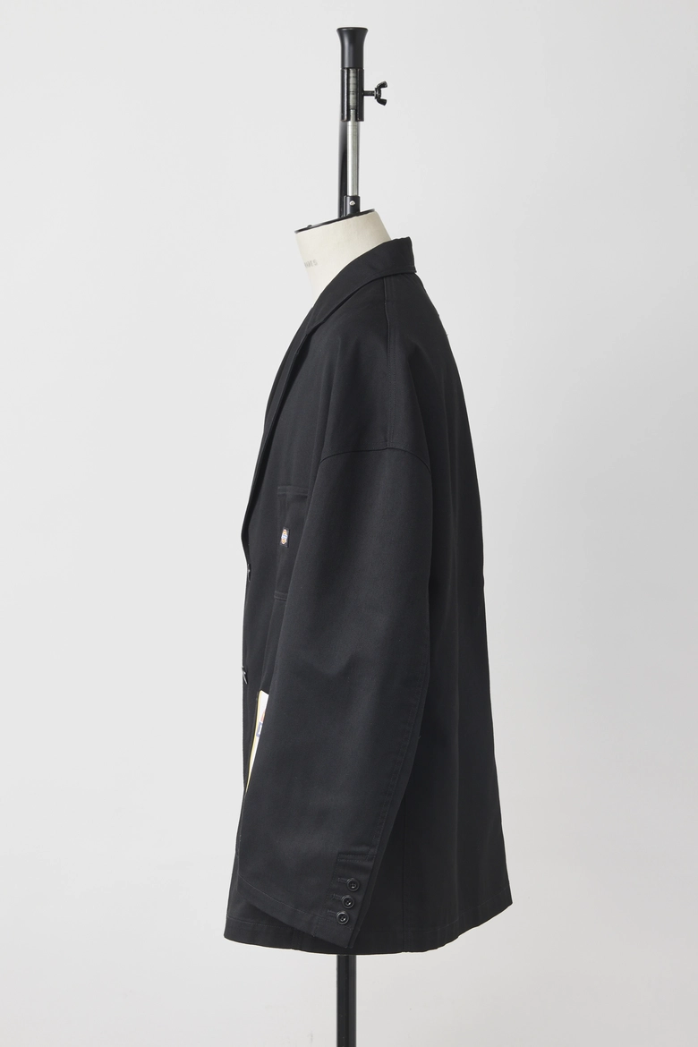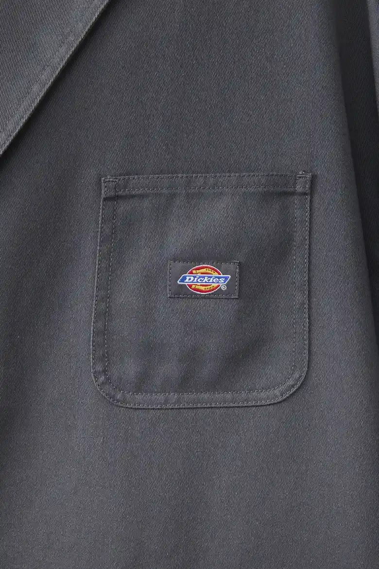 ブランドの代表作「HIS JK」をベースに、<Dickies>が長年使用してきたT/Cツイル素材を用いたワークジャケット。肘下まで落ちるドロップショルダーや、立てても着用可能な襟など、オリジナルの構造美はそのままに、軽やかでタフな素材感が融合した特別仕様。
