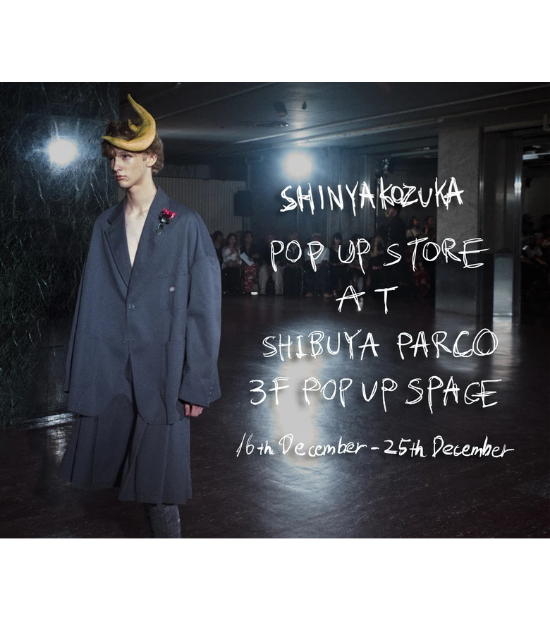 <SHINYAKOZUKA(シンヤコヅカ)>が、2025年12月16日(火)〜12月25日(木)の期間、渋谷PARCO 3FのPOP UP SPACE「PATH」にて、ポップアップストアを開催する。本イベントでは、<Dickies®(ディッキーズ)>との新作コラボレーションアイテムを発売するほか、<SHINYAKOZUKA>の2025年秋冬コレクション「ISSUE #7」、および2026年春夏コレクション「ISSUE #8」からの一部先行販売も予定されている。