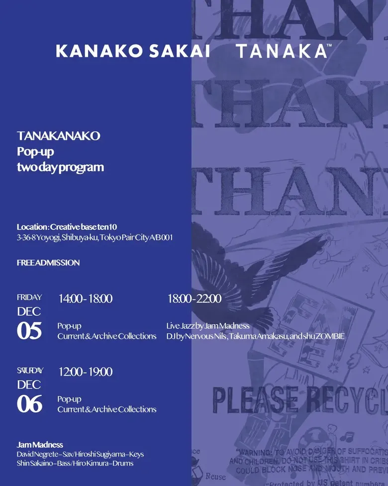 TANAKAとKANAKO SAKAIが共演、12/5(金)・6(土)にポップアップ「TANAKANAKO - Two Days Pop-up」を開催