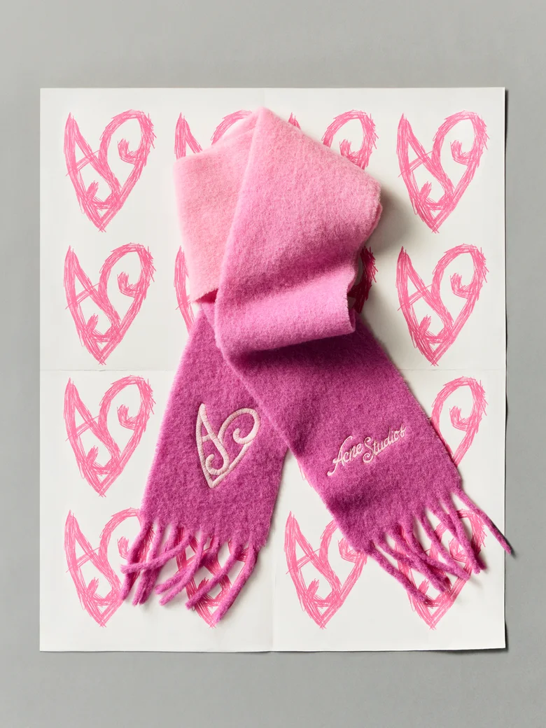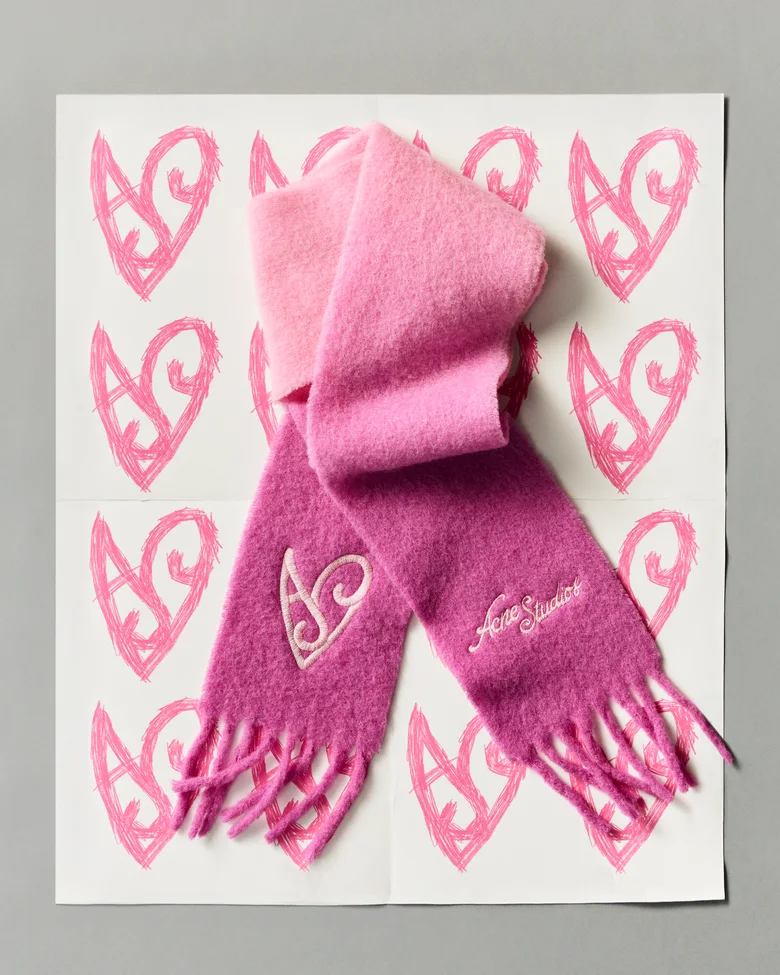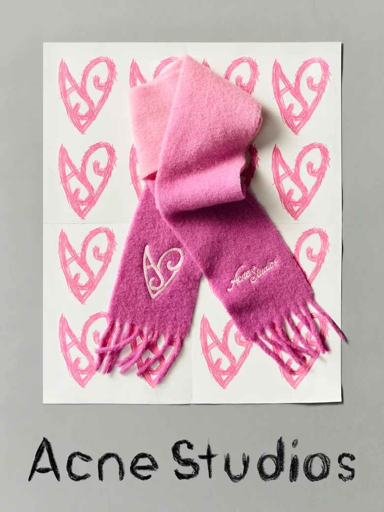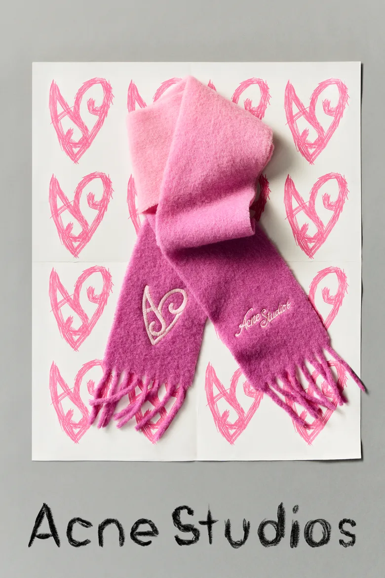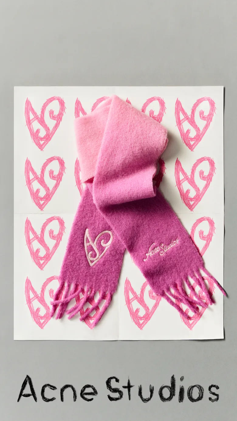 新作のフード付きスカーフは、心地よい暖かさをもたらしてくれる。また、鮮やかなピンクとライラックの色調が印象的なアイコニックなモヘア素材のVallyスカーフは、ハートモチーフの刺繍やフリンジエンドによって祝祭ムードを演出し、コレクションに彩りを添えている。