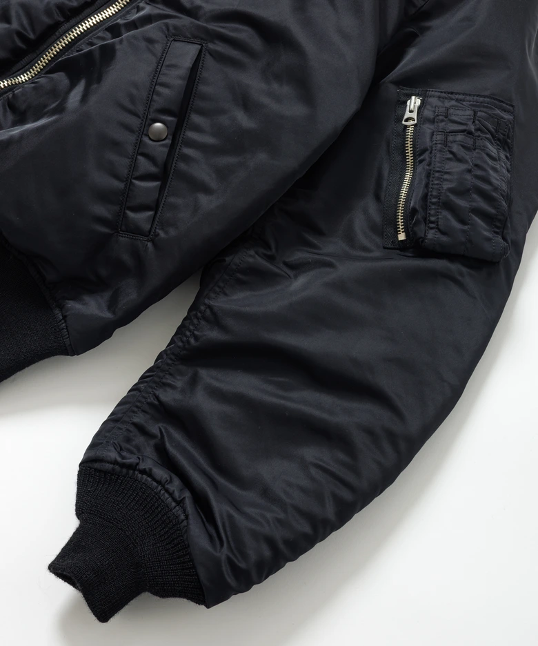 今回の別注対象は、高い人気を誇る“MA-1”モデル。1953年〜60年にかけて作られていたMA-1をベースにアップデートして製作され、程よくボリュームのあるシルエットと着丈の短いボックスシルエットが魅力。