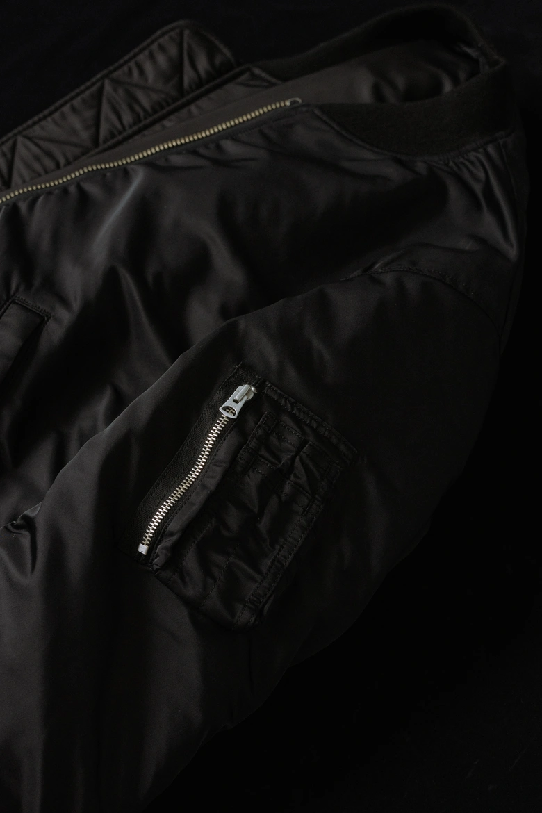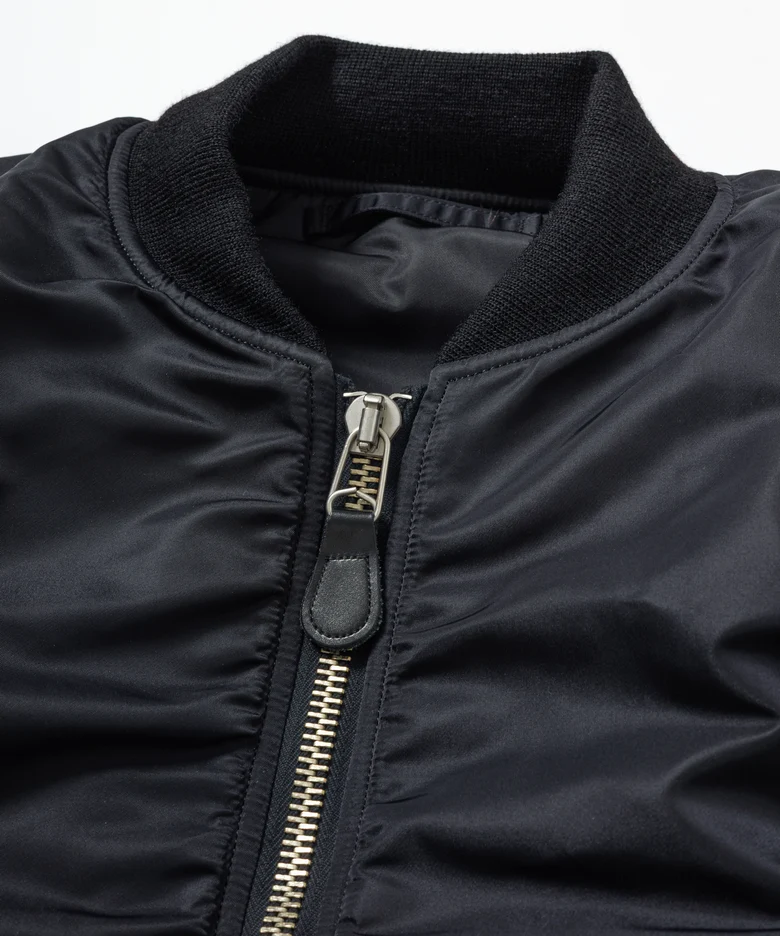 インラインでは真鍮のゴールドジップを採用しているが、今回の別注ではよりクリーンな印象で着用できるようにブラックボディにアルミのシルバージップを採用。ジップの色を変えるだけのシンプルな別注が、そのシンプルなポイントがMA-1その物の表情を大きく変え<BIOTOP>らしいモダンな仕上がりになっている。