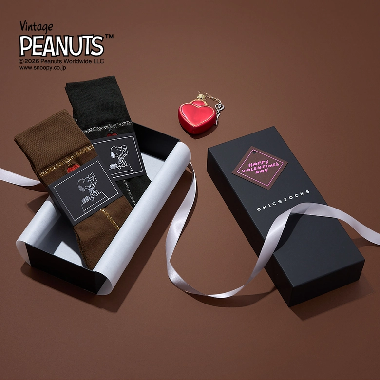 ソックスブランド<CHICSTOCKS(シックストックス)>は、人気キャラクター・スヌーピーをデザインに取り入れた新作ソックス「ラメライン ハートバルーン」を2026年1月21日(水)に発売した。