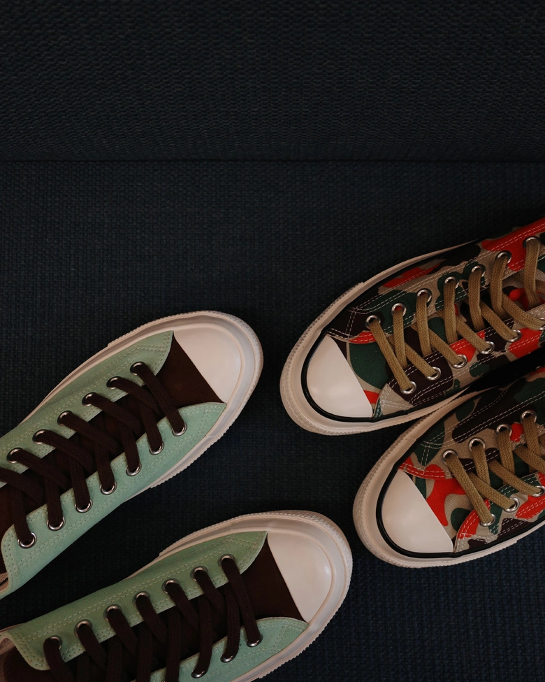 今回発表されたのは「ALL STAR LGCY 83CAMO OX / 56」と「ALL STAR LGCY SU OX / 56」の2型。いずれも中津川氏が好むOXカットをベースに、ストリート感とポップさを兼ね備えたデザインが特徴である。
