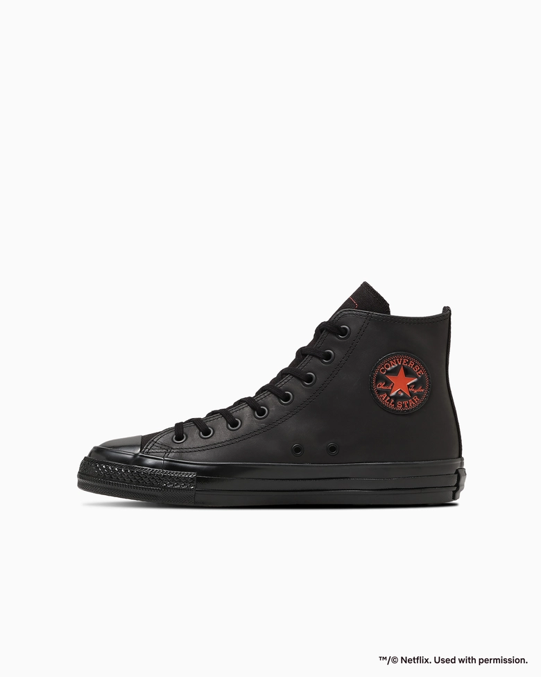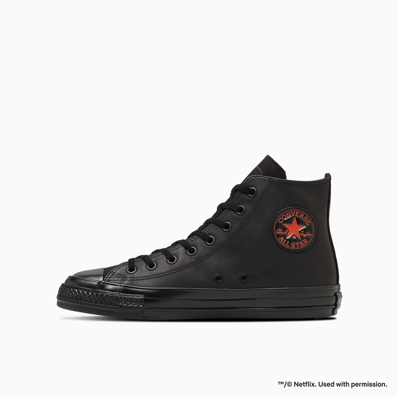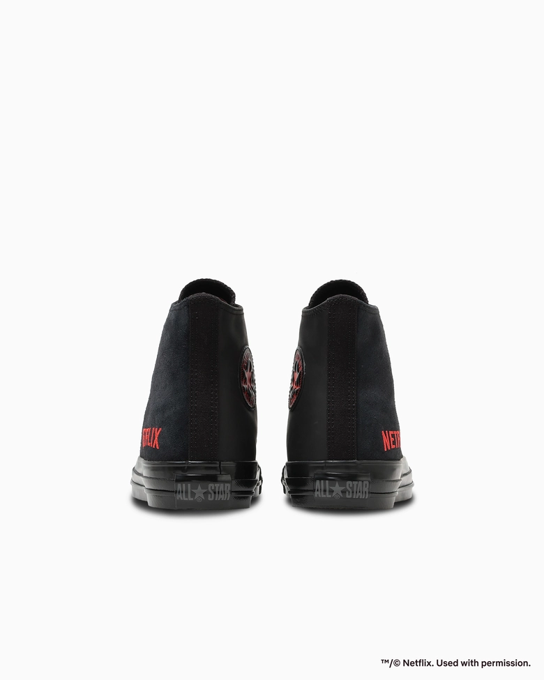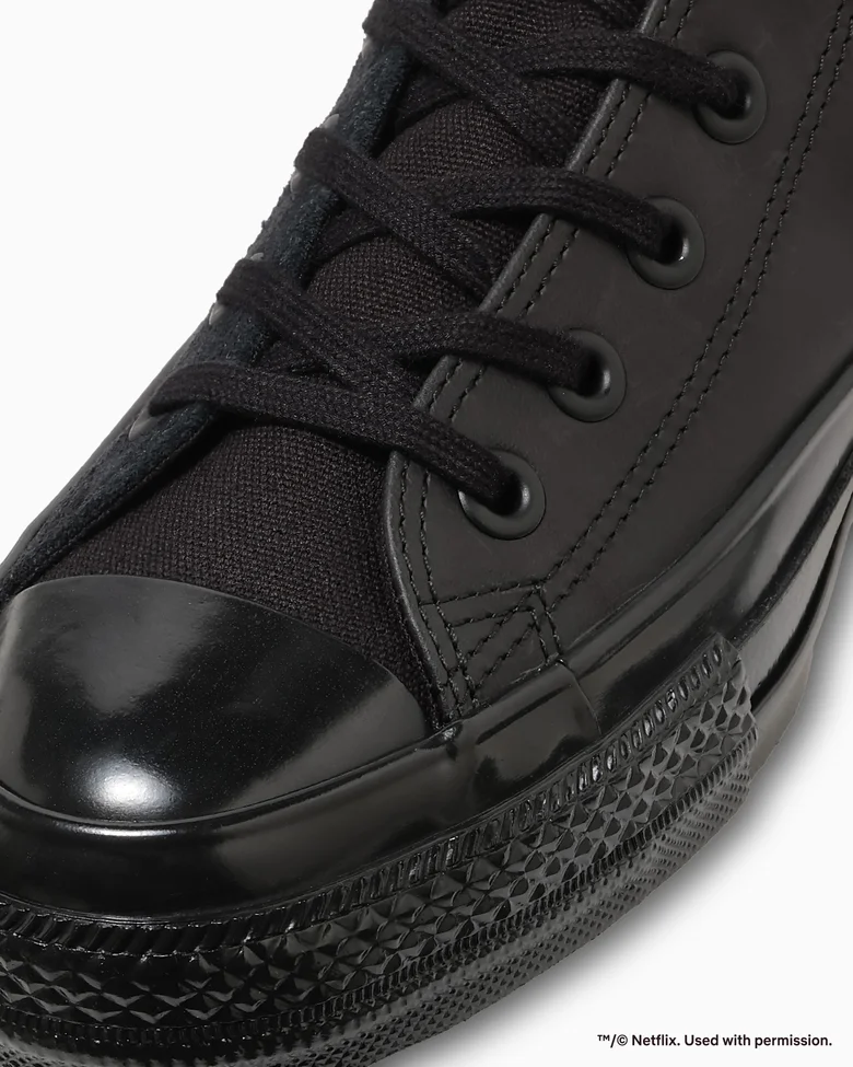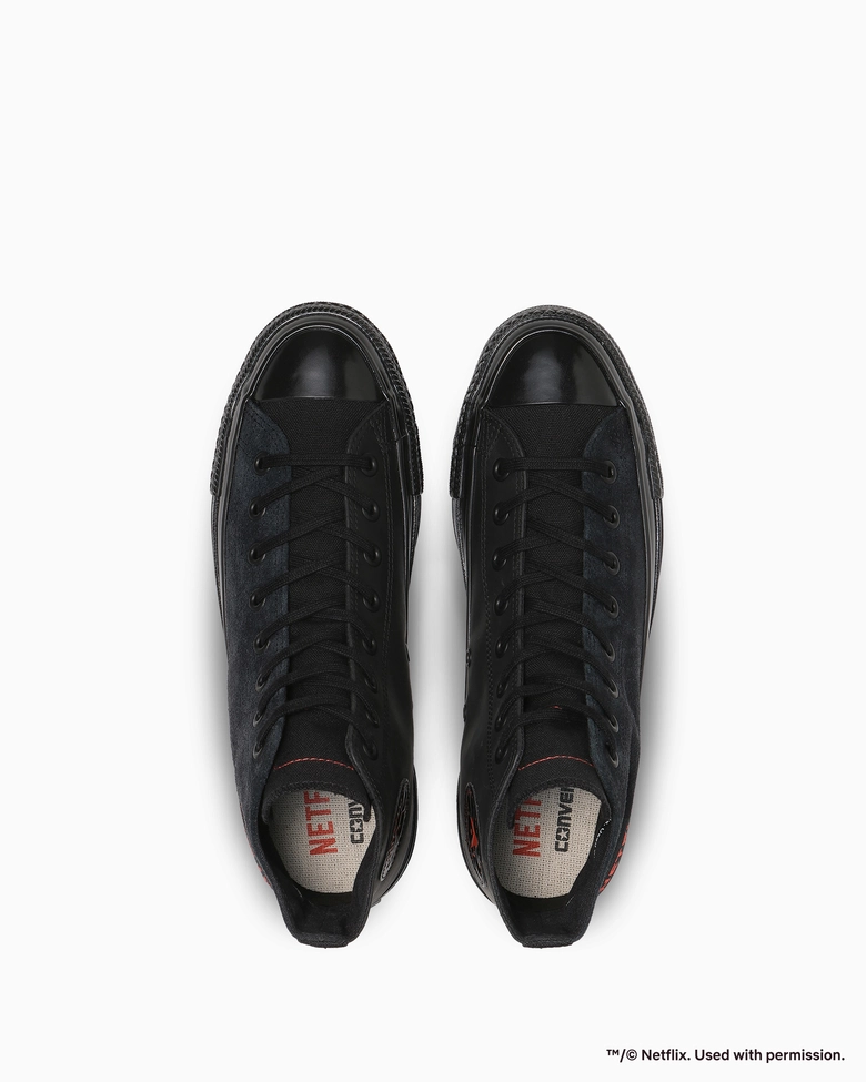 定番シリーズ「ALL STAR AGED(オールスター エイジド)」をベースに、ブラックを基調とし、象徴的なレッドをアクセントにしたNetflixの世界観をシューズ全体で表現。外腰にNetflixロゴを刺しゅうし、タン裏にはプロフィールアイコンのスマイルマークラベルを配し、ファンにはたまらないディテールを加えられている。アッパーにはレッドステッチを効かせ、さりげないアクセントもプラスされている。