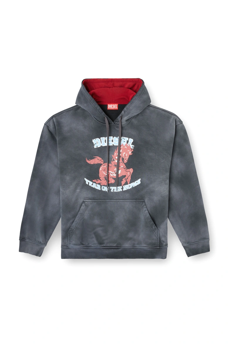 さらに、オーバルDトラックデニムのフーディとパンツは、<DIESEL>のアイコニックなレッドコードと旧正月の伝統色である赤を想起させる、深みのあるフェードバーガンディで仕上げられている。コレクション全体を通して、午年がもたらす進化のスピード、大胆さ、そして力強さを表現している。