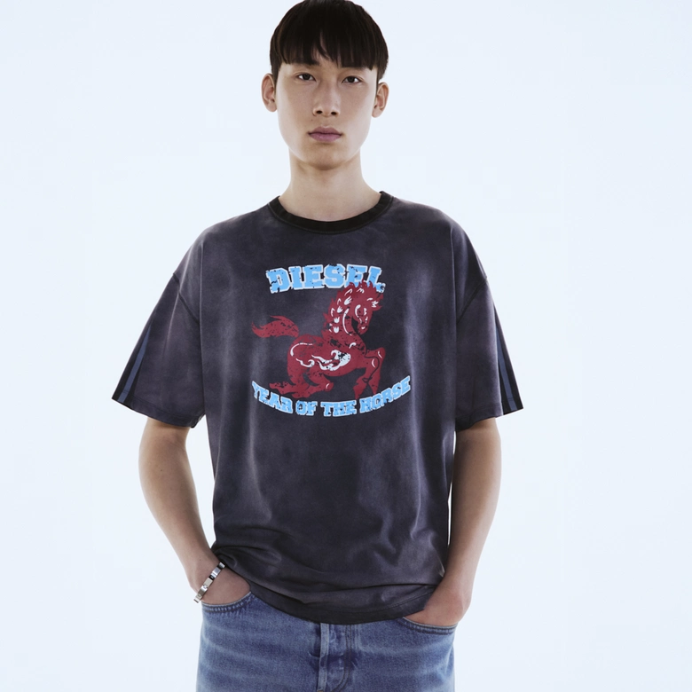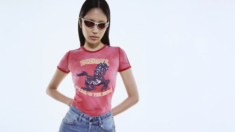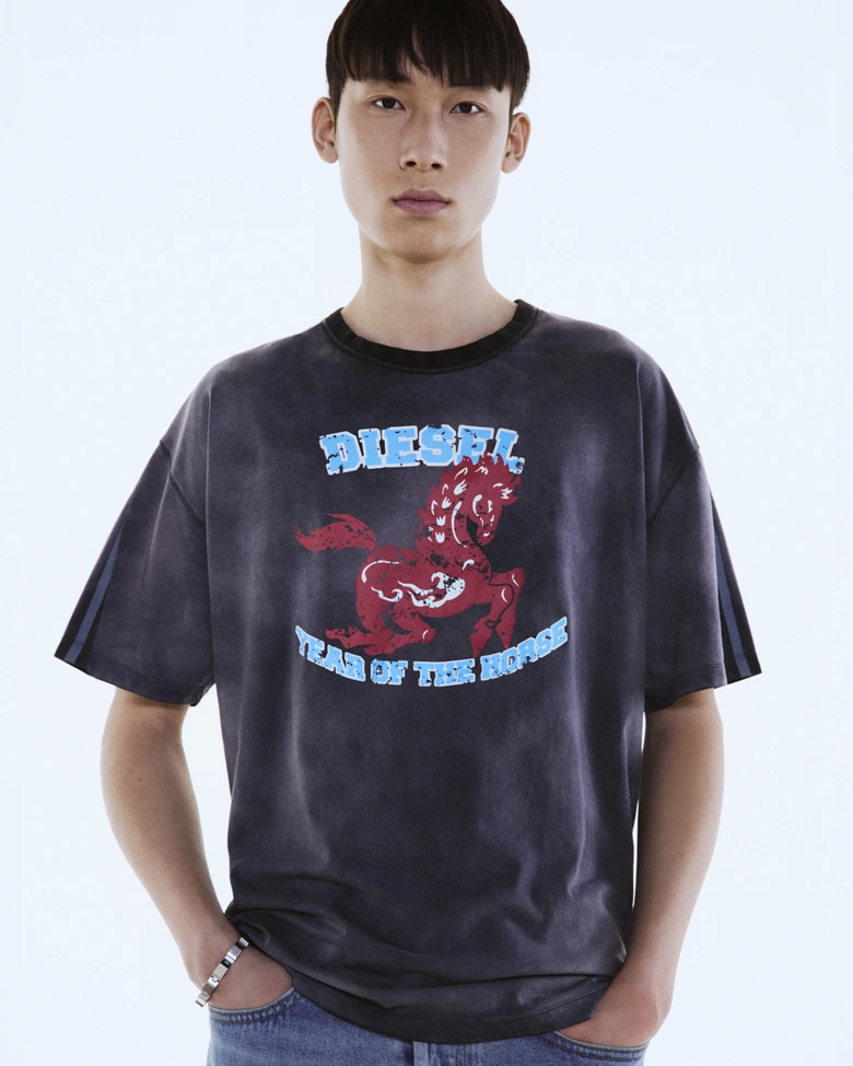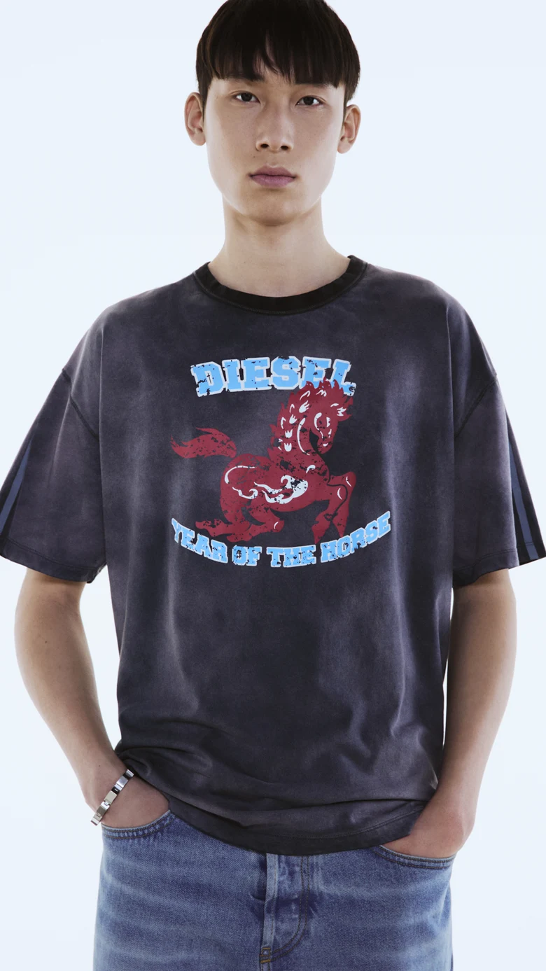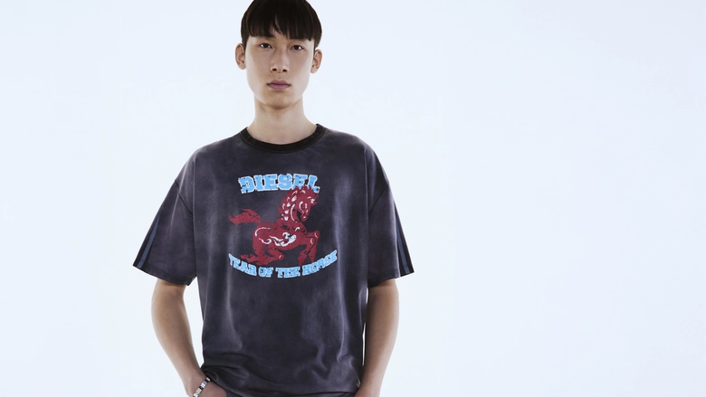 2026年、激動の変革の年である「午年」が幕を開け、一年を通してスピーディーな変化と勢いが加速する。この節目を祝し、<DIESEL>のクリエイティブ・ディレクター、グレン・マーティンスによる全9点のカプセルコレクションが登場。ダイナミックな干支「馬」のスピリットを、力強く、鮮烈に表現したラインナップとなっている。情熱、自由、個性、反骨精神の象徴である「馬」は、非凡さ、自己表現、そしてエネルギーという<DIESEL>の核となる価値観を体現している。