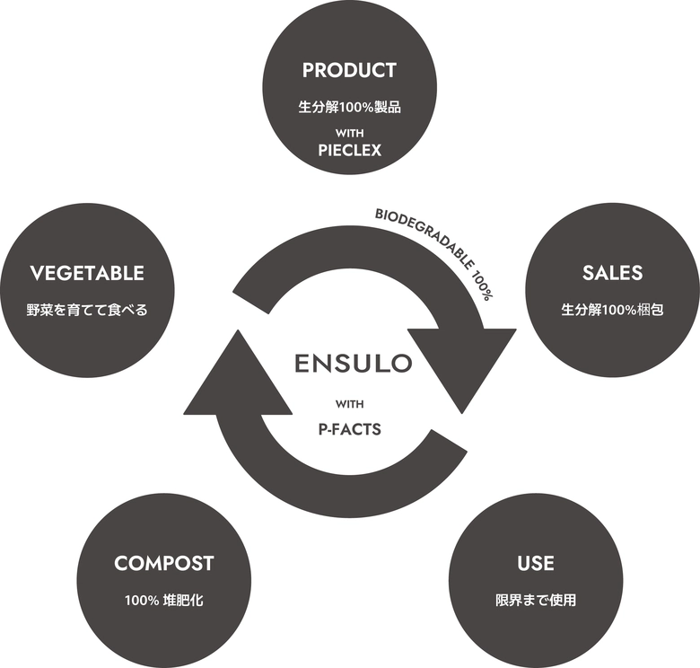 <ENSULO>は、日本の伝統技術に現代的な解釈を加えたデザインで、全製品に生分解性植物由来素材「ピエクレックス」を採用。繊維の動きによって発生する微弱な電気により抗菌効果を発揮する特性も持つ。