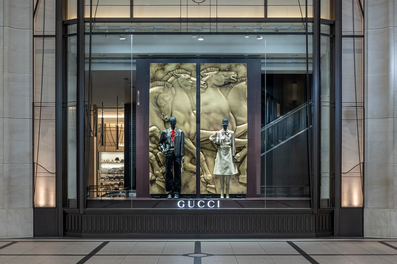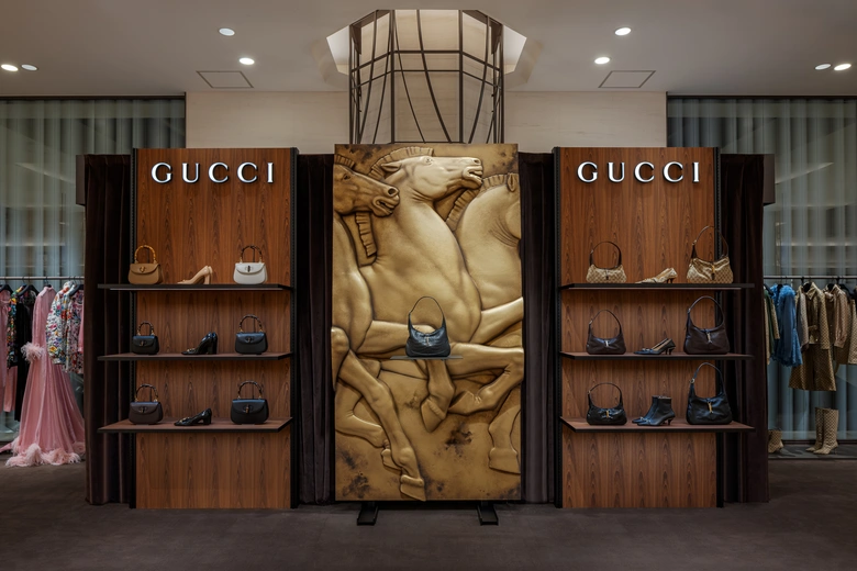 本ポップアップは、2023年9月にミラノのパラッツォ・メッツァノッテで開催されたイベントの世界観を継承し、「La Famiglia」コレクション発表時の空気感を彫刻的なインスタレーションとして再現するもの。中心モチーフとなる馬は、<GUCCI>と乗馬の世界との深い結びつきを想起させるとともに、ブランドのコードを象徴している。