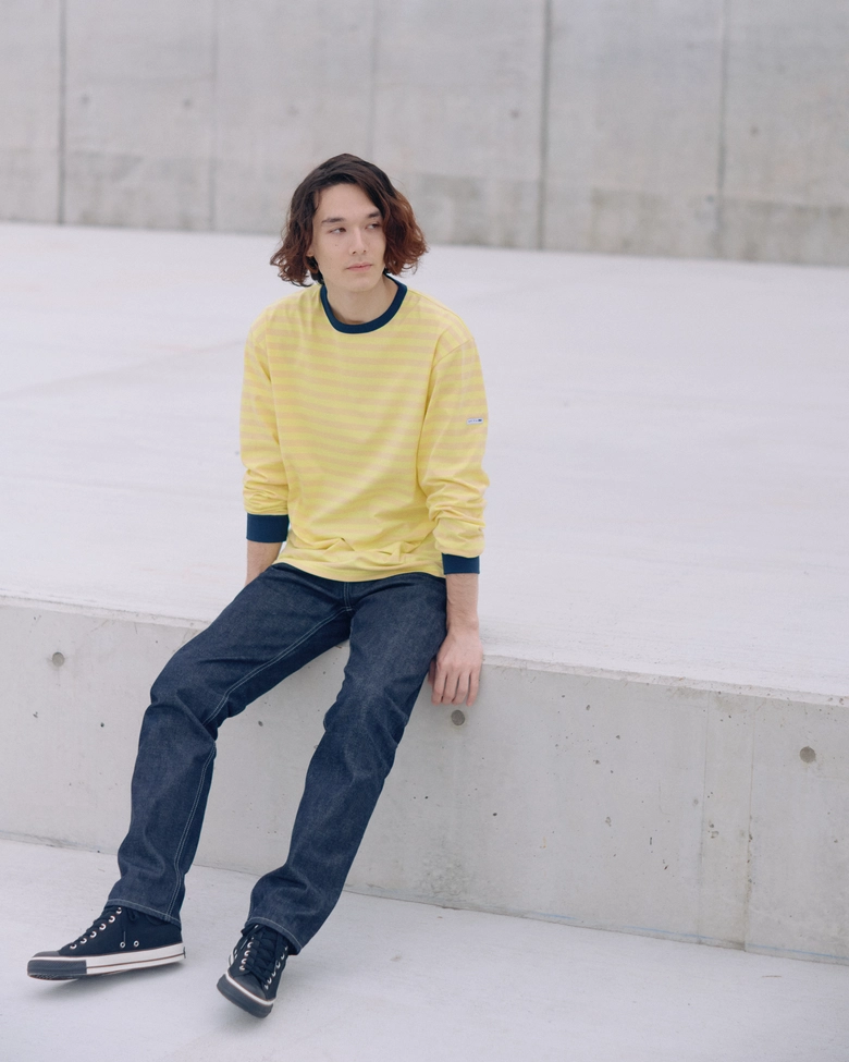 海由来のリサイクル素材を用いた、12mmピッチのボーダーTシャツ。ナチュラルな風合いとドライタッチの裏地で快適な着心地を実現。