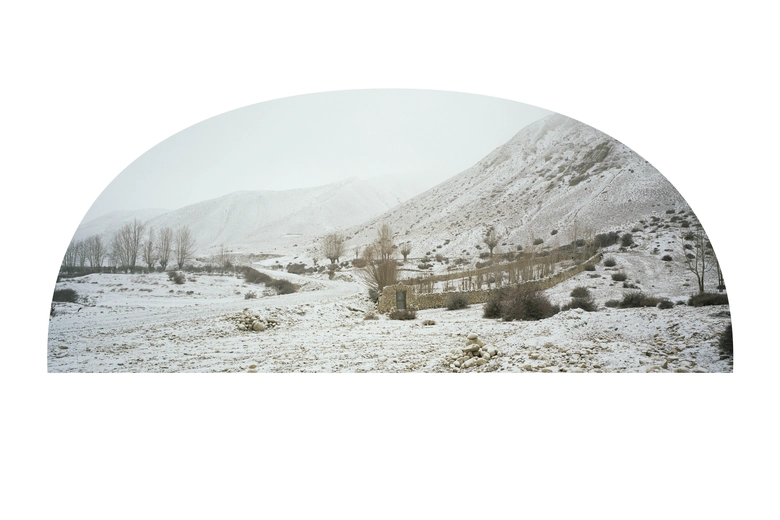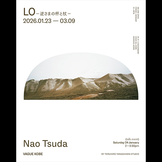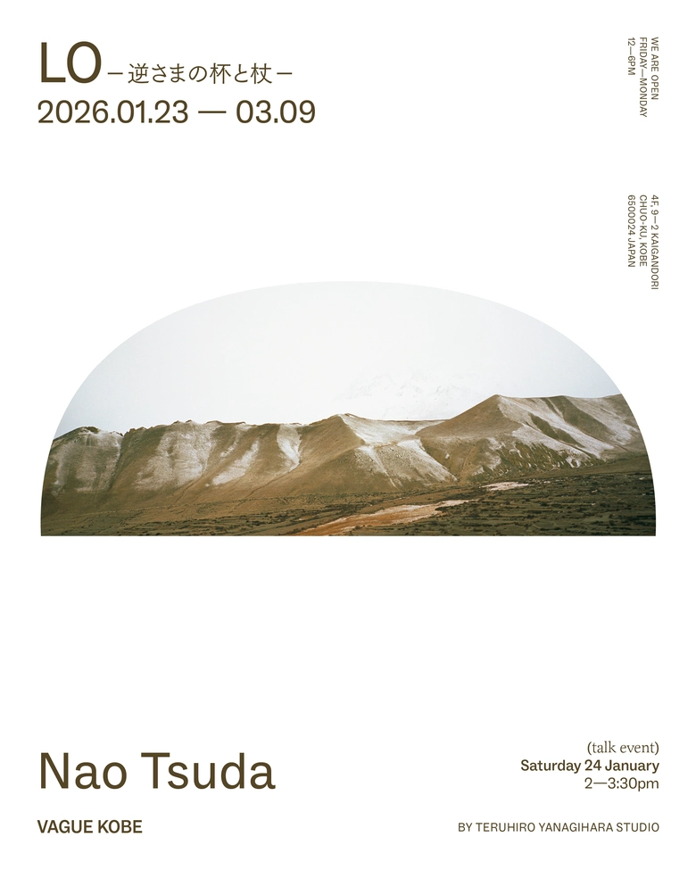本展で初公開されるシリーズ「LO」は、ネパールの奥地・ムスタン地方を訪れた旅の成果である。ヒマラヤ山脈の影に包まれたその地は、冬の時期に入域許可が必要な閉ざされた場所。乾いた大地に吹く風、空へと伸びる山の稜線、風景と共鳴するように佇む仏塔。そして、高地ならではの澄んだ空気が、光の粒となって写し込まれる。津田が旅の途中で見つめた数々の風景が、Vague Kobeの空間の中に、ひとつの地平として現れる。