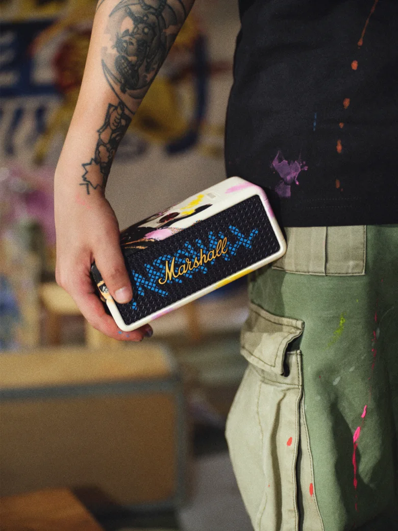 今回、FCCKの大胆なアートワークは「Emberton III」と「Studio 900 Combo」の両モデルに施されている。特に「Emberton III」では、マットなシリコンスリーブに“水圧転写プリント(Hydra Print)”を初めて採用した。水面に浮かべたデザインを転写する独特の製法により、プリントの伸縮や揺らぎが一つ一つ異なり、一台ごとに唯一無二の表情を見せる。