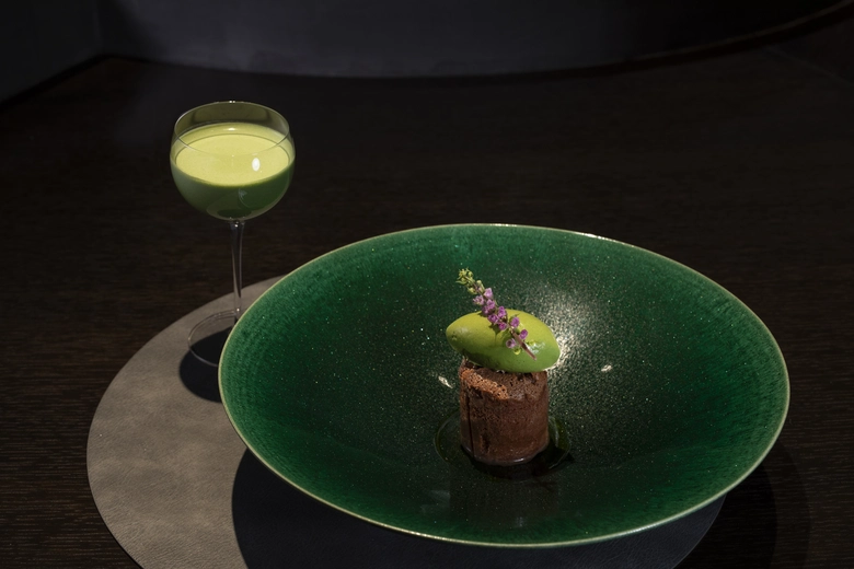 また、日本茶を主軸に構成された<VERT(ヴェール)>の「茶湊流水」は、和の素材とカカオが静かに重なり合うコース。いずれも松屋銀座限定で提供される。