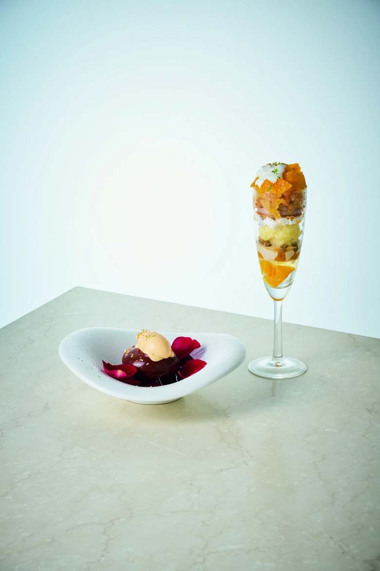 なかでも注目したいのが、パティシエが一皿ずつ目の前で仕立てるデセールコースの初登場だ。