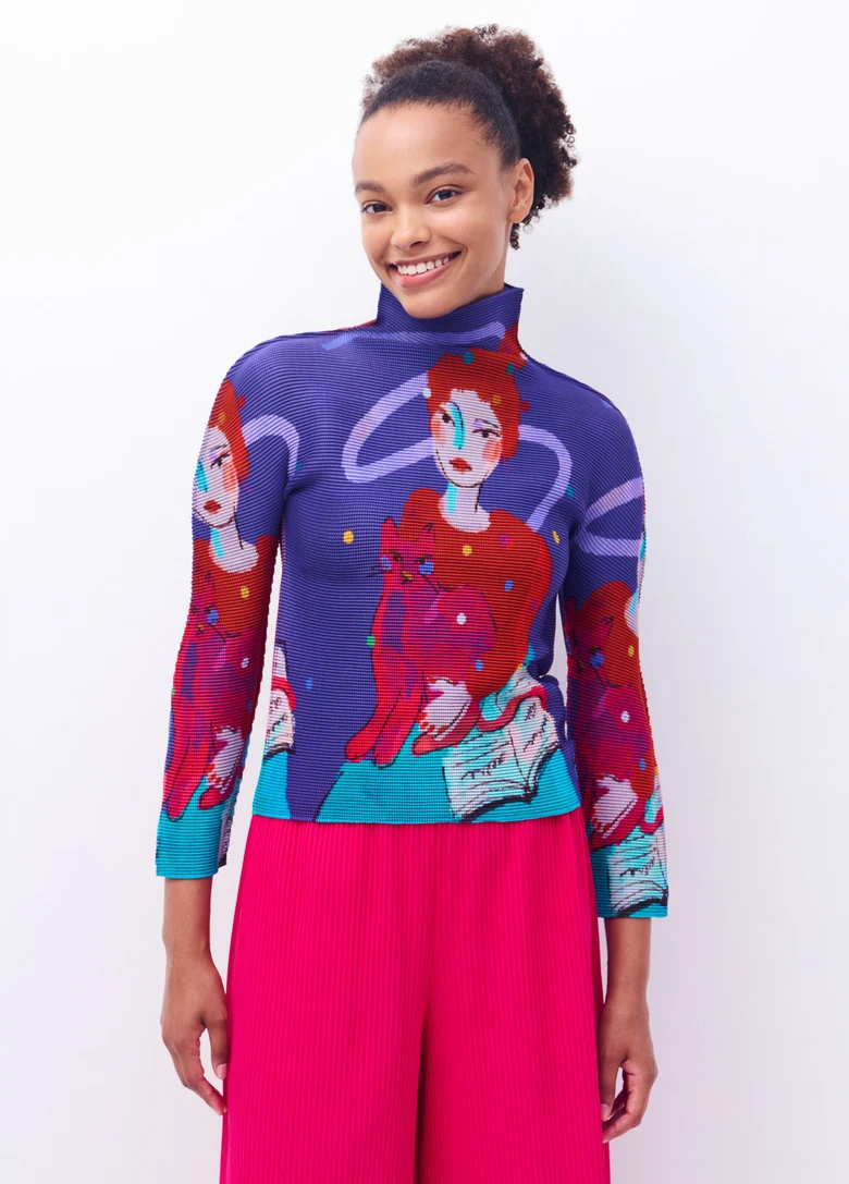 見習いの魔法使いと猫をモチーフにした、プリントのストレッチプリーツ。