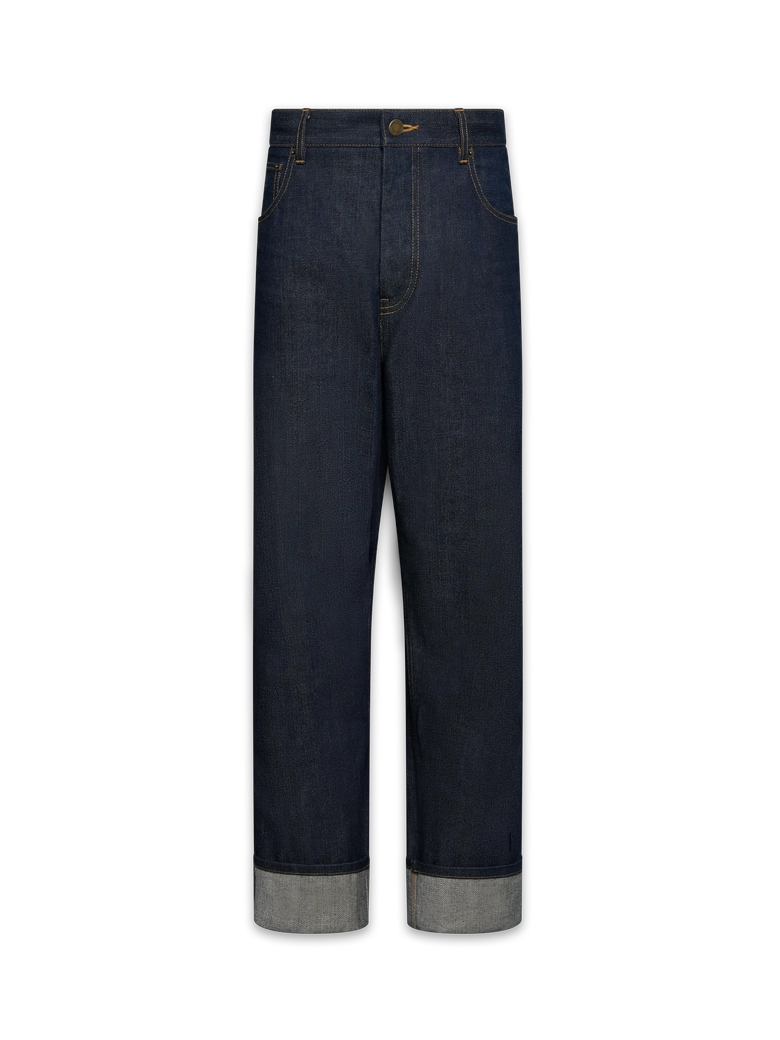 本作は履き古すのではなく、履き込むことで完成していくデニム。過去へのオマージュでありながら、今の時代にふさわしくアップデートされたモダンクラシックなコレクションに仕上がった。ストレートシルエットでの着用はもちろん、裾を折り返してトリコロールをさりげなく見せるスタイリングもおすすめだ。