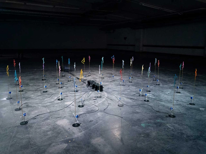 会場には、世界的なアートアワード「Prix Ars Electronica 2025」でHonorary Mentionを受賞した藤堂高行の《鎖に繋がれた犬のダイナミクス》をはじめ、大阪・関西万博で注目を集めた《ふしぎな石ころ“echorb”》や、ミラノデザインウィーク話題作《ZZZN SLEEP APPAREL SYSTEM》など、国内外で注目を集めたプロジェクトが集結。